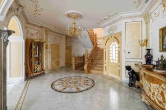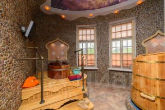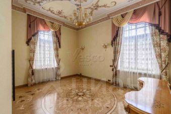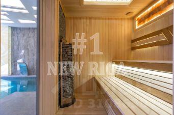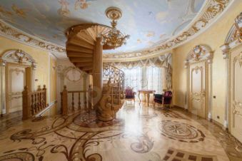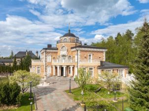 Лот 102656. Эксклюзив Vesco Realty. Коттеджный поселок ''Третья охота''Элегантная резиденция 1778 кв.м, созданная по индивидуальному проекту в классическом стиле, расположена на участке 28 сот в КП Третья Охота, всего в 9 км от МКАД по Новорижскому шоссе, с удобным заездом через Рублевское и Ильинское шоссе. Один из самых близких элитных коттеджных поселков, со сложившейся застройкой и статусными спокойными соседями.В доме: 7 спален, ТВ-гостиная, каминный зал со столовой, изолированная кухня, спа-комплекс с сауной и хаммамом, бильярдная, 2 бара, винная, библиотека, несколько помещений свободного назначения, блок персонала с отдельным входом, гараж на 3 м/м, многочисленные террасы и балконы, даже собственная смотровая.Особенности резиденции: живописный зеленый участок с ландшафтным дизайном, парадный въезд с круговой площадкой и фонтаном в центре, особняк с меблировкой заезжай и живи, отделка дорогими материалами по эксклюзивным эскизам, в доме много элементов ручной работы, интерьеры в стиле венецианской классики, все в отличном состоянии.ПЛАНИРОВКАВысота потолков — 3,7 м.1 этаж:Общие помещения: прихожая (11,1), гардеробная (7,2), холл (28), каминный зал (45), столовая (29), кухня (22,1) с выходом на террасу (22,3), гостиная (74,4) с выходом на террасу (9,8), кабинет (12,8) с кладовой (1,5), гостевой с/у (1,5), зона спа с бочкой (10,5), сауна (6,9) с душевой (2,3), гараж на 3 м/м (71,3).Спальни: гостевой блок со спальней (10,3), санузлом (3,9), кладовой (2,9) и гардеробной (4,9).2 этаж:Общие помещения: холл (38), балкон (4).Мастер-спальня (22) с будуаром (10), гардеробной (9), ванной комнатой (7) и балконом (7). Спальня (21) с гардеробной (5) и ванной комнатой (4). Детские (19 и 20), детская (15) с балконом (10), общая ванная (9).Мансардный этаж первый:Холл (40), библиотека (53), комната для занятий или хранения (87).Мансардный этаж второй:Смотровая (14), балкон (19).Цоколь:Бильярдная с баром (72), переговорная (55), винное хранилище (11), хаммам (19) с комнатой отдыха (28), гостевой с/у (5).Блок для персонала: спальня (10), кухня (14), с/у (3).Постирочная (14), оружейная (17), кладовые (16 + 9 + 11 + 9), генераторная (15), котельная (11), электрощитовая (9).УЧАСТОКРезиденция стоит на участке с ровным рельефом и живописным ландшафтным дизайном в парковом стиле. На территории установлена беседка с мангалом, фонтан у въезда, сад камней с водопадом и фигурами ангелов, обустроены зоны современных грядок.По периметру территория огорожена хвойными растениями, на участке высажены взрослые растения (канадский дуб, клены, кусты) и плодовые деревья (20 шт.). На участке древесно-подзолистый грунт, выполнен дренаж, есть автоматический полив, устроено освещение. Участок угловой с двумя соседями, расположен недалеко от лесного массива.КОНСТРУКТИВ И МАТЕРИАЛЫКирпичный особняк, монолитные перекрытия, крыша - медь, фасад - натуральный камень и декоративная штукатурка, многочисленный декор в виде статуй, карнизов и балюстрад. Террасы отделаны мрамором.Стены в доме - декоративная штукатурка, роспись, натуральное дерево и мрамор. Пол — художественный паркет и мрамор. Потолки - ручная роспись и деревянные элементы. Двери и подоконники - массив дерева, мрамор. Лестничный марш - массив дерева, тончайшая работа по эксклюзивным эскизам. ИНЖЕНЕРИЯЦентральные водоснабжение и канализация, электричество 45 кВт.В доме приточно-вытяжная вентиляция Daikin, два котла Viessmann мощностью 225 кВт (26,2 куб.м/ч). Охранная и пожа