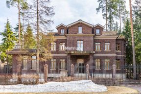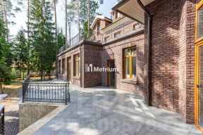 ID 10 892. Александровка. Загородный комплекс общей площадью 750 м² состоит из дома, гаража на 2 машины с квартирой для персонала, бани и винного погреба. Фасад главного здания выполнен в английском стиле и облицован клинкерным кирпичом. Интерьер оформлен в теплых оттенках, установлена мебель итальянских брендов. В коттедже разместили 4 спальни, кабинет, гостиную с камином и вторым светом, кухню, бильярдную, сауну и бассейн длиной 10 метров. На просторном участке 50 соток с многолетними соснами обустроена беседка, выполнен ландшафтный дизайн и вымощены дорожки.Поэтажное описаниеЦоколь: бильярдная, кабинет, техническое помещение, котельная, кладовая, бассейн, сауна.1-й уровень: холл, гардеробная, гостевая спальня, кухня, гостиная, санузел.2-й уровень: 3 спальни, 3 санузла, 2 гардеробных.