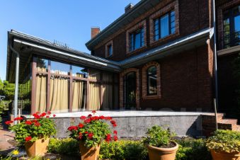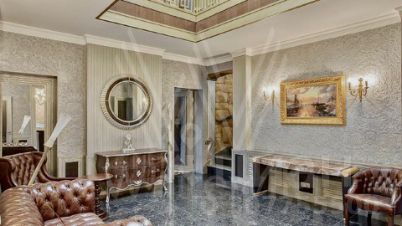 Лот 57985. Дом под ключ 623 кв.м. на участке 8.68 соток. Количество спален: 6. Петрово-Дальнее, Ильинское шоссе, 15 км от МКАД. Петрово-Дальнее. Дом дуплекс в средиземноморском стиле на одну семью (дети, родители), расположен в городской черте, площадью 623 кв.м с отделкой ''под ключ''.Материал стен: кирпич глиняный (красный). Внешне оштукатурен, покрашен, отделан натуральным камнем. Фундамент - плита монолит, кровля металлочерепица, окна тройные стеклопакеты. Внутренняя отделка стен: обои, оштукатуренные и покрашенные, фактурная штукатурка. Материал пола: паркет, плитка. Ремонт: дизайнерский.Дом разделен на две, независимые части с отдельным входом в каждую. В каждой части - 3 спальни, 2 санузла, полностью оборудованная кухня-столовая, гостиная, гардеробная, постирочная, кабинет. Одна половина полностью меблирована. В каждой спальне установлены кондиционеры, на первом этаже и санузлах теплые водяные полы, в отделке использованы дорогие отделочные материалы - плитка Испания, Италия, лестница отделана натуральным дубом. Под всей площадью дома на цокольном этаже расположена подземная парковка на 8 автомобилей, есть слив и дренаж для мойки автомобилей, с помещением для персонала, также в цокольной части дома расположена бойлерная.Участок 9 соток: мощенный тротуарной плиткой Готика, засеен газон, посажены деревья, есть место для барбекю, огорожен деревянным забором с автоматическими воротами.Дополнительные строения: гостевой дом 50 кв.м с отделкой ''под ключ'', в доме: прихожая, кухня-гостиная, спальня, санузел. Категория земли: земли населенных пунктов. Назначение земли: для ЛПХ.Расстояние до леса: 0.5 км от дома. Расстояние до водоема: 0.4 км от дома. Наличие шумов: нетКоммуникации: электричество 30 кВт, магистральный газ, городская центральная канализация, артезианская скважина, установлена система фильтрации воды. Интернет, телефон, спутниковое телевидениеДом расположен в городской среде, в шаговой доступности школа, детский сад, поликлиника, автобусная остановка с маршрутами до метро Тушинская. Рядом Москва река 400 метров.Мебель: полностью меблированТехника: кондиционер, стиральная машина, встроенная кухня, домашний к/т, плазменный TV, холодильник, посудомоечная машинаБезопасность: охрана дома, сигнализация ОВО, датчики движения Цокольный этаж: парковка на 8 автомобилей, с помещением для персонала, бойлерная.Правая половина 180м2: 1 этаж: 1 спальни, санузел, кухня-столовая, гостиная, гардеробная, постирочная.2 этаж: 2 спальни, санузел.Левая половина дома 220м2: 1 этаж: 1 спальни, санузел, кухня-столовая, гостиная, гардеробная, постирочная.2 этаж: 2 спальни с гардеробными, санузел.