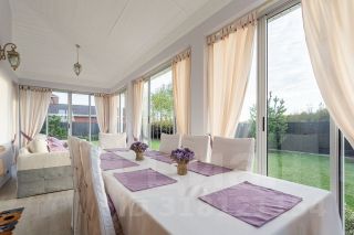 Здравствуйте!ТИШИНА и ГАРМОНИЯв НОВОМ и УНИКАЛЬНОМ ДОМЕ!Фасад этого архитектурного ансамбля полностью ориентирован на естественный природный ландшафт и находится на возвышенности так, что перед взором открывается крохотная речка, зелёная лощина, а также виды на утопающе в зелени деревьев загородные усадьбы. Тишина и гармония!Участок 19,5 соток, ЗНП, ИЖС.4-х уровневый жилой дом 807,7 м2 с лифтом (Италия, AXEL).Здание охраны/персонала 94 м2, свой бойлер, включая гараж на два авто.Летний дом-гостиная с кухней и санузлом 50 м2, свой бойлер.Гостевая парковочная площадка с отдельными автоматическими воротами.Искусственный водоём с ландшафтом.Пешеходные дорожки с фонарным освещением территории.Круглый пандус и парадная лестница.Проект реализовывался не на продажу, что подтверждается перфекционистским отношением к качеству использованных материалов, оборудования, исключительным дизайном и особенным интерьером с штучными предметами красоты.Натуральный гранит с перламутровыми элементами-пол, лестницы,Натуральный наборный дубовый паркет с орнаментами и перламутровыми вкраплениями-пол,Стены: керамическая плитка BISAZZA, японские обои,Двери, дверные, оконные и арочные порталы-карельская берёза.Окна-алюминиевые стеклопакеты с дубовыми накладками.Архитектурные инсталляции.Мягкие цвета, многоуровневая подсветка потолков и стен, гармония керамики, дерева и металла.Сантехника производства Италии, кухонная заказная мебель, бытовая техника Kuppersbusch.Итальянский лифт-AXEL с остановками на всех 4 уровнях дома.Электричество 25кВА, в каждой комнате кондиционеры DAIKIN, приточно-вытяжная вентиляция, газовое отопление, автоматические регуляторы температуры в каждой комнате, водопровод-скважина (возможно центральное подключение), канализация-центральная. В доме возможна организация 8-ми спален на 5 санузлов.Цоколь-Бассейн, сауна, комната отдыха, санузел, котельная на два параллельных газовых котла BUDERUS, водоподготовка.1 этаж: двухсветная гостиная, кухня, столовая, комната/спортзал/спальня, санузел.2 этаж: 4 спальни, санузел, второй свет гостиной.3 этаж: спальня, санузел, апартаменты владельцев (мастер-кухня, санузел, спальня, гардеробная).Мансарда: помещение для хранения вина, кинотеатр.Дом-кирпич, ж/б перекрытия, жесткий утеплитель, штукатурка, фигурная плитка.Цоколь-облицован гранитной плиткой VERDE, крыша-металлочерепица.Круглый пандус и парадная лестница - капустинский гранит.Нахождение объекта в границах населенного пункта, а не на сельскохозяйственных землях, избавляет от грабительских и космических сборов Управляющих Компаний.Въезд авто на территорию через автоматические ворота, солидные соседи живут постоянно.Востребованная локация данной территории наполнена всеми инфраструктурными объектами: транспорт, магазины, питейные заведения, а наш объект органично расположен чуть в стороне и защищён от чужого любопытства и людской суеты.Фотографии ограничивают впечатления! Лучше увидеть своими глазами!Звоните.