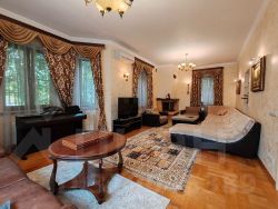 Собственник.Особняк 1237 м2 в хвойном лесу на участке 31 сотка в собственности и 70 соток в пользовании в коттеджном посёлке Росинка, расположенном в живописном районе городского округа Красногорск Московской области в 14 километрах от МКАД по Новорижскому шоссе рядом с Павлово Подворье. Дом находится в лучшей, самой тихой, части поселка и полностью окружен лесом.Дом построен по проекту известного архитектора в 2017 году, особенностью которого является панорамные окна с потрясающим видом на собственный хвойный лес, СПА-комплекс и бассейн (13х4м) с противотоком, жилье для персонала с отдельным входом и кухней и др.На первом этаже 598 м2 расположены: гостиная, столовая, кухня, бассейн, холл, гостиная, TV-зона, библиотека, кабинет, санузлы, гардеробные, гараж.На втором этаже 434 м2 расположены: 4 мастер-спальни с санузлами, 4 спальни гостевых, кабинет, гардеробные. Отдельно со своим входом жилая зона персонала с 2 спальнями, кухней и санузлом.На третьем этаже 220 м2 расположены с фантастическим видом на поселок, хвойный лес и окрестности: детская игровая, свободная зона, библиотека и сигарная комната.Подвал 400 м2: с возможностью создания винного погреба, кладовых, гардероба и др.ТУ: эл-во 200 кВт, газ 15 м3 час, центральное водоснабжение, центральная канализация, газовое оборудование Viessmann с разведенным отоплением, приточно-вытяжная вентиляция, участок полностью огорожен каменным забором.Инфраструктура поселка: КПП с въездом только по пропускам, видеонаблюдение по всему поселку, круглосуточная охрана всего периметра и территории, футбольное поле и спортивные площадки, детская площадка и др. К каждому земельному участку подведены телекоммуникации, линия стационарного телефона, интернет, централизованное водоснабжение и канализация, магистральное газоснабжение.Поселок расположен на 54 гектарах и окружен густым хвойным лесом, что обеспечивает свежий воздух, тишину, которую время от времени разбавляет пение птиц, зайцы и белки, что создает уединение и спокойствие. Люди, которые ищут умиротворение поблизости со столицей, найдут его в этом месте.Уникальность данного поселка заключается в его выгодном географическом расположении. Располагаясь фактически в лесу, время пути до центра столицы не займет больше 20 минут. Это оценят люди, которые работают в Москве, но желают жить в здоровой атмосфере. Росинка находится на съезде с Новорижского шоссе, поэтому добираться на личном транспорте до нее крайне просто. Можно доехать также и на общественном транспорте: от метро Строгино регулярно ходят 3 маршрута прямо до поселка.