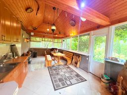 Продается прекрасный двухэтажный (трехуровневый) коттедж в деревне Поздняково д 135 Можайского района Московской области, вблизи Можайского водохранилища. Дом возведен в 2008г по индивидуальному проекту. Удобная и функциональная планировка, общей площадью с учетом холодных помещений 200кв.м. Через просторную террасу, с кованными перилами, попадаешь в уютный дом. На 1 этаже прихожая (18кв.м), холл (12кв.м) с входом в теплый гараж (28кв.м) с автоматическими воротами, роскошная кухня-столовая (15кв.м) с итальянским кухонным гарнитуром выполненный по индивидуальному заказу, барной стойкой из натурального дерева ручной работы и встроенной техникой (посудомоечная машина, вытяжка, варочная газовая панель, испанская эл. духовка, холодильник). Прекрасную гостиную (25кв.м) украшает кирпичный камин- печь (установлен на фундаменте) сделанный по спецзаказу, большие эркерные окна, художественный ламинат. Красивая деревянная арка соединяет пространство между кухней и гостиной. Совмещенный санузел (5кв.м) с угловой ванной, отделан светлой плиткой. Бойлерная. На 2 этаж ведет широкая деревянная лестница с резными балясинами. Необычно красиво смотреться на стене большая фреска в стиле прованс. На этаже холл (11кв.м) с выходом на просторную открытую террасу с кованными перилами и шикарным панорамным видом. Смежно-изолированные комнаты: 15-13-13кв.м. Две спальни объединены выходом на белоснежный балкон с каменными балясинами. Санузел. На мансардном уровне- помещение свободного назначения (50кв.м), обшит и утеплен вагонкой, с интересными пирамидальными окнами. Высота потолков от 2,8 до 3м. Дизайнерский ремонт выполнен из высококачественных материалов: на полу антивандальный художественный ламинат и паркетное покрытие, на окнах пластиковые трех камерные солнцезащитные стеклопакеты, кондиционеры, на радиаторах отопления - деревянные экраны, установлена система умного дома, сигнализация, видеонаблюдение с датчиками движения в доме и по территории участка. Все действующие коммуникации заведены в дом: электричество (15кВт, тариф -деревенский, 3-х фазный), два двухконтурных котла газовый и электрический, бойлер пр-во Германии на 200л, американская система очистки воды- Гидровелл, газгольдер на 5,5кубов, переливной септик (3 ж/б кольца), колодец (16 ж/б колец), немецкий гидроаккамулятор 500л, аква сторож от водопротечек. Кадастровый 50:18:0040230:801. Конструктив дома - газосиликатные блоки, толщина стен метр, внешне отделан декоративной штукатуркой, крыша металлочерепица, опалубка глубиной 25см, ленточный фундамент глубиной 1,8м. Участок ровный, правильной формы 11 соток, огорожен двухметровым металлическим забором с автоматическими воротами. Ухоженная территория, по дорожкам установлены красивые фонари, искусственно-декоративный пруд с фонтаном, произрастают: жасмин, яблоня, груши, каштан, Сумах, крыжовник. На участке построен летний одноэтажный домик (30кв.м) с мангальной зоной, хозблок 40кв.м. 1 собственник, полная стоимость в ДКП.