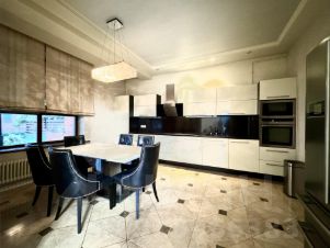 ID 1141Дом с новым современный ремонтом. Полностью мебелирован и готов к проживанию. Удобная эргономичная планировка, которая включает: сауну, бассейн, 6 спален, 7 ванных комнат, 3 гостиных, в т.ч. Лаунж зона на закрытой крыше, кухню, столовую, кабинет, кинотеатр, комнату для занятий, игровую для детей, спорт зал, комнату для персонала или охраны, постирочную, отдельные гардеробные, кладовые и технические помещения. 2 просторные террасы для барбекю и отдыха. Дом имеет хорошее расположение в поселке, выход в парк. Хорошая локация и инфраструктура в поселке и рядом с ним.