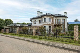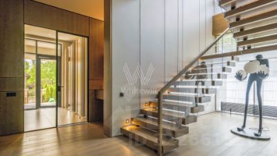 Коттеджный поселок Премиум-класса ''Барвиха XXI''. 5 км от МКАД, примыкает к лесному массиву. Дом площадью 968кв.м полностью готов к проживанию, меблирован.Планировка особняка:1 этаж: прихожая, гардеробная, холл, гостиная с камином, кухня со столом для завтраков, столовая со вторым светом, кабинет, проф.кухня, комната персонала, гостевой санузел, постирочная, котельная, гараж на 2 м/м, 2 этаж: холл, основная спальня с ванной комнатой и гардеробной, три спальных сьюта со своими ванными комнатами и гардеробным и гардеробными. Во внутренней и внешней отделке использованы дорогостоящие материалы премиального уровня. Просторный солнечный участок площадью 34 сотки, выполнено ландшафтное проектирование и озеленение. Смонтировано освещение участка и автополив.Все коммуникации центральные: газ, канализация, водоснабжение, электричество - 25 кВт.Вся необходимая социальная инфраструктура есть в ближайшем окружении в пределах 15 минут езды на автомобиле. До г.Одинцово 12 минут.Удобное расположение посёлка позволяет подъехать к нему как с Рублёво-Успенского шоссе, так и со стороны платной трассы (в обход г.Одинцово).Из посёлка выход в парковую лесную зону, которая в ближайшее время станет полноценным благоустроенным парком на лоне природы.