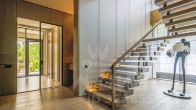 Двухэтажный дом 500 м2 на красивом участке 20 соток в КП ''Гринфилд''.Расположенный в сердце поселка, этот особняк обладает уникальным преимуществом — всего лишь один сосед, что гарантирует дополнительную приватность и тишину, сохраняя при этом близость ко всей необходимой инфраструктуре.Внутреннее пространство вмещает просторную гостиную с камином, кабинет, 4 спальни и 5 санузлов.Второй свет и панорамные окна в 2 этажа создают удивительное чувство пространства, заполняя интерьер мягким естественным светом.На участке выполнен ландшафтный дизайн, высажены декоративные растения, установлено уличное освещение, вымощены удобные дорожки. Имеется навес для нескольких автомобилей.Гринфилд — уникальный проект Villagio Estate в глубине живописного леса, всего в 23 км от МКАД по Новой Риге. Особое внимание уделено живописному въезду с лесной дороги. Атмосфера здесь сочетает уют и статусность соседей.В центре — парк с озером 2 га, песчаным пляжем и тремя островами: один с ротондой, два — для чаек. Для активного отдыха — 1,5 км прогулочной тропы здоровья, 7 км лесной лыжни, теннис, волейбол, петанк и уличные шахматы. Парк украшен гротом, фонтанами, ручьём и сценой для мероприятий, создавая атмосферу спокойствия и гармонии с природой.Гринфилд предлагает всё необходимое для жизни: ресторан Villagio на озере, кафе Apriori, детский сад и английскую школу Kingsley School, 4 детские площадки. Спортивные возможности включают теннисный корт, площадку для пляжного волейбола, баскетбольное кольцо и 2 воркаут-площадки. На территории также есть магазин и химчистка.Поселок закрыт, охраняется круглосуточно. Пропускная система и видеонаблюдение обеспечивают высокий уровень безопасности. Здесь царит дух респектабельности и добрососедства, создавая атмосферу клуба успешных людей.Номер лота: 5027