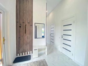 Готовый к проживанию дом с видом на природу в подмосковье, 91 кв. м. в европейском стиле с дизайнерским ремонтом, отделкой под ключ. в 25 минутах от Зеленограда. (всего 40 км от мкада и 9 мин от Солнечногорска) адрес: деревня Новая (Проживание в частном доме в городском поселении!!) С нами выгодно строиться в ипотеку: для наших клиентов действуют специальные условия от 6 до 9,9% + рассрочка на первоначальный взнос 0%! Пляж на Истринском водохранилище в д. Трусово - 12 минут езды на автомобиле от дома. Преимущества этого дома: Уникальная планировка и высококачественная отделка. Просторная кухня-гостиная с высокими потолками - 4 метра !!! Три полноценные спальни, включая мастер-спальню с собственным гардеробом и санузлом. Элемент второго света в кухне-гостиной, придающий дому особый шарм. Дом имеет панорамное остекление в кухне гостинной, весь дом заполняется естественным светом благодаря большим и просторным окнам. Проживание в частном доме в городском поселении Обратите внимание, что терраса не входит в стоимость дома и пристраивается отдельно! Этот дом воплощает в себе все, что вы искали: комфорт, уют, прекрасный вид на природу и современные удобства. Он предлагает современный дизайн и функциональную планировку, которая позволит вам полноценно наслаждаться жизнью за городом. Фундамент - Свайно ростверковый с монолитной плитой (сваи - буронабивные) Уютная кухня-гостиная ЧИСТОВАЯ ОТДЕЛКА, светильники и полностью оборудованные санузлы. Стены - газобетонный блок (Bonolit) Мягкая кровля Технониколь Шинглас (утеплена в 4 слоя ) Теплый пол и радиаторы Выход на задний двор из кухни-гостиной Энергосберегающие окна KBE Стастус дома - ИЖС близость к городам: Зеленоград, Москва ( Подмосковье ), Солнечногорск Все коммуникации в доме - электричество, вода, септик. Отопление от электрического котла. Газ вдоль участка. Находится в экологически чистом районе подмосковья, с хорошей развитой инфраструктурой. Современное уличное освещение. Асфальтированный круглогодичный подьезд и подъездные пути. Участок - ровный, огорожен, распашные ворота, калитка. В 20 м. автобусная остановка. В 100 м. - сетевые супермаркеты. В 400 м. школа и детский сад. Идеальное место для постоянного проживания. В 800 м. грибные леса и пляжи истринского водохранилища. Все соседи тихие, построились и живут круглогодично ( никакого шума строек, грузовиков и тд.) О застройщике: Мы — строительная компания ЮКО, специализируемся на строительстве частных и малоэтажных домов. За последние 3 года успешно реализовано 8 коттеджных поселков, 425 коттеджей построено и сдано в срок. В штате более 300 сотрудников, каждый рабочий проходит внутреннюю академию независимо от опыта. У всех единое понимание и навык работы по высоким стандартам ЮКО. Мы аккредитованная компания — возможна покупка по льготной ипотеке + рассрочка на первоначальный взнос 0%, поможем с оформлением. Если ищете дом для круглогодичного проживания в развитом посёлке на Истре, который в течение 1-2 лет вырастет в цене на 20-25% — то вы уже нашли!) P.S. Добавьте это объявление в избранное, чтобы не потерять этот уникальный вариант!
