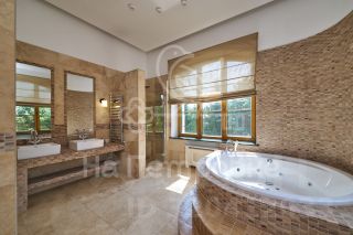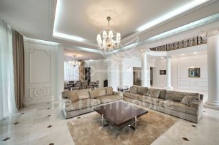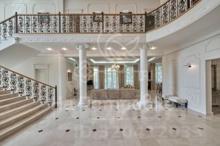 Лот 544110. Без комиссии для покупателя!ДОМ В ПОСЕЛКЕ НОВАХОВОНоворижское шоссе - 9 км от МКАДПлощадь 950 м2Участок 18 сот.5 cпален7 санузловОПИСАНИЕ:Предлагается просторный коттедж в классическом стиле со вторым светом и бассейном на участке 20 сотокПОЭТАЖНОЕ ОПИСАНИЕ:Цоколь: техпомещения, с/у1-ый уровень: прихожая, холл, гостиная со вторым светом, кухня - столовая с выходом на теплую закрытую террасу с камином, кабинет, бассейн (7м), бочка, сауна, душевая, с/у, гараж на 2 м/м, тех.помещение, с/у.2-ой уровень: гостиная с камином, бар, комната, спальня с с/у и балконом, спальня с с/у и террасой, мастер-спальня с с/у, гардеробной и зимним садом, спальня с с/у и гардеробной.Оперативный показ. Звоните!Номер объекта: #1/544110/10278