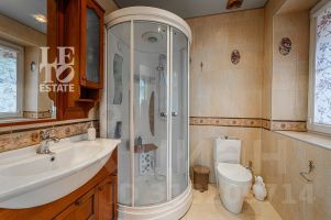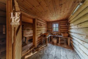 Арт. 74376198 Представляем Вашему вниманию дом-шале 475 кв.м., расположенный в поселке Урожай всего в 10 км от МКАД по скоростному Новорижскому шоссе. Дом полностью готов для постоянного проживания. Австрийский стиль не оставит Вас равнодушными. Дом построен из кирпича, что делает его очень теплым даже в самые холодные зимние дни и сохраняет прохладу в утомительную летнюю жару. Основной дом построен в 2002 году. В 2019 году собственник сделал полностью косметический ремонт с использованием высококачественных материалов. На первом этаже разведен теплые полы, где плитка. Лестницы и межкомнатные двери изготовлены из массива дуба, камин в гостиной выполнен из натурального змеевика. Вся необходимая мебель и бытовая техника в отличном состоянии. Котельная полностью организована, установлено дорогостоящее оборудование: система водоочистки, газовый котел. Заведены и разведены центральные коммуникации: газоснабжение, электричество. Канализация - септик, водоснабжение - поселковая скважина. Установлено спутниковое телевидение, заведено оптоволокно. Удобное расположение дома в поселке, в дали от основных подъездных трасс и шума. Большое преимущество дома - наличие второго крыла с кухней, в котором можно разместить гостей или помощников по дому, не пересекаясь с ними во внутреннем пространстве. На участке построена баня с беседкой из кругляка, дровяник, зона барбекю, детская площадка, отдельный гараж на 3 машиноместа, дополнительно навес на 3 машиноместа + место для квадроцикла. Выполнен ландшафтный дизайн, выстелен газон, организован искусственный пруд, сделан автополив и освещение на всем участке. Обилие взрослых хвойных и лиственных деревьев. Посажены плодовые деревья: грушевые, черноплодные деревья, яблони, кусты айвы. Предусмотрено место для выращивания сезонных овощей или организации цветника.Планировка основного дома:Первый этаж: коридор, гостевой санузел, бассейн, сауна с душевой кабиной, гостиная, зимний сад, кухня, кабинет с санузлом.Второй этаж: две спальни, санузел с ванной и душевой кабиной, мастер спальня с джакузи.Третий этаж: гардеробная, гостевая-библиотека, спальня.Мансарда: спальняЦоколь: кладовая, бильярдная, бойлерная, постирочная, комната общего назначения, холодная кладовая, санузел с душевой. Второе крыло дома:Первый этаж: коридорВторой этаж: студия с кухней, санузел с душевойТретий этаж: спальняПоселок ''Урожай'' расположен в 10 км от МКАД по скоростному Новорижскому шоссе. Территория хорошо охраняемая, находится в окружении леса, доступ осуществляется на автомобиле только через КПП, так же предусмотрены два выхода через калитку в разных частях поселка для прогулок по лесу. К поселку ведет асфальтированная двухполосная дорога, широкие межпоселковые дороги так же заасфальтированы, что позволяет без труда разъехаться двум машинам. На территории имеется детская и спортивная площадка, магазин со всеми необходимыми продуктами и бытовой химией, овощная лавка. Рядом с поселкам вся необходимая инфраструктура: торговый центр Рига Молл, с магазинами, ресторанами, кинотеатрами, развлекательными центрами, салонами красоты, строительные моллы Леруа Мерлен, OBI, мебельный центр Hoff, Архангельское Аутлет, спортивно-развлекательный центр Air Arena, многопрофильный медицинский центр Premier Medica, автомобильные салоны Major, гипермаркет Г