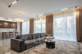 ID 8110Дом в современном стиле в КП ''Успенские дачи - 1''Шикарный загородный дом с 4-мя спальнями, общей площадью 380 м², представлен ''под ключ'' и расположен на лесном участке 8 соток. Продумана удобная планировка. Первый этаж: прихожая, кухня, столовая, гостиная, санузел, котельная. Второй этаж: спальня с гардеробной и санузлом, спальня с санузлом и 2 спальни.Дом возведен в современном стиле из высококачественных материалов в самом престижном районе Подмосковья. Фасадные материалы закуплены и находятся на объекте. Роскошный интерьер в неоклассическом стиле исполнен в светлых тонах, дополнен изысканной мебелью и предметами декора. В санузлах - сантехника ведущих производителей. В собственной сауне будет приятно восстанавливать силы после трудового дня. На эксплуатируемой кровле организована зона для отдыха в теплое время года. Из панорамных окон открываются вдохновляющие виды на собственный лес. Большая площадь остекления и высокие потолки делают дом светлым, просторным и очень уютным. На застекленной террасе удобно устраивать застолья и душевные посиделки.Центральные коммуникации (газ, электричество, водоснабжение и канализация), телефон и телевидение позволяют жить на природе с городским комфортом. На участке с превосходным ландшафтным дизайном аккуратно уложен газон, сделаны дорожки, растут кустарники и лесные деревья. В тени деревьев будет приятно отдыхать во время летнего зноя. Живая изгородь создает приватную атмосферу. Имеется крытая парковка. Элитный коттеджный посёлок ''Успенские дачи - 1'' находится рядом с санаторием Управления делами Президента. Быстро доехать до Москвы на машине можно по 2-м трассам — Рублево-Успенскому и Можайскому шоссе. Благодаря новому Одинцовскому объезду путь до МКАД занимает всего 15-20 минут. Вы сможете вести активный образ жизни в ритме трудовых и учебных будней. Поселок окружен хвойным лесом с озером, где приятно прогуливаться, устраивать пикники, кататься на велосипедах, а зимой - на лыжах. Чистейший воздух, прекрасная экология Одинцовского района, живописные пейзажи и пение птиц наполняют душевной гармонией. Ухоженная территория поселка занимает более 60 гектаров и разделена на 2 зоны озером. В КП созданы парки со скверами и прогулочными зонами. Обустроены детские и спортивные площадки. Все коттеджи возведены с учетом высоких стандартов строительства и с использованием современных технологий. Для удобства жителей в КП есть гостевая парковка и автомойка. Территория посёлка огорожена и круглосуточно охраняется. Видеонаблюдение ведется 24/7. В 1 км. расположен поселок Успенское, где работают магазины, Ломоносовская школа, Успенский лицей, частный детский сад, кафе и медицинские центры. В Московском конезаводе 1 есть школа верховой езды. Неподалеку работают рестораны и развлекательные заведения. В соседнем поселке Борки можно посещать Рублевский рыболовный клуб, а в ''Николино'' - заниматься в фитнес-центре ''Riviera''. Любители спорта также оценят теннисный клуб ''Рублево''.