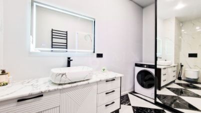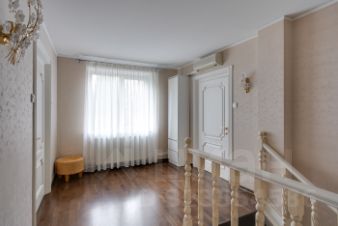 ID 4044Просторный четырёхуровневый дом в коттеджном посёлке ''Крона'' на Новой Риге Загородный дом с 6-ю спальнями, общей площадью 530 м², представлен ''под ключ'' и расположен на видовом участке 20 соток.Удобная планировка продумана до мелочей и идеально подойдет для большой семьи. На первом этаже: прихожая, гардеробная, холл, кухня, столовая, гостиная, камин, спальня, санузел, котельная.На втором этаже: холл, мастер-спальня с санузлом и гардеробной, детская спальня, спальня, 2 санузла. На третьем этаже (Мансарда): холл, спальня, санузел, помещение свободного назначения, где можно организовать кабинет, кинотеатр или тренажерный зал, техническое помещение.Цоколь: холл, СПА-комплекс с сауной и хаммамом, а также спальня, 3 санузла, постирочная, 3 технических помещения.Превосходный загородный дом возведен по современным технологиям в соответствии с высокими стандартами качества. Монолитно-кирпичная конструкция делает дом прочным и долговечным. В доме выполнена отделка с применением материалов от ведущих мировых производителей. Современный интерьер укомплектован стильной мебелью и предметами декора. Широкая винтовая лестница гармонично дополняет убранство дома. Уютная гостиная с камином станет местом притяжения для душевных посиделок с близкими. Панорамные окна, большая площадь остекления и высокие потолки делают дом светлым и просторным. Сантехника в доме - от английского бренда ''ВАGNОDЕSIGN LОNDОN и VАDО'' с идентификационными номерами. Установлены деревянные оконные стеклопакеты, а на полах - паркет из натурального дуба, обработанного маслом. Центральные коммуникации обеспечивают городской комфорт круглый год: магистральный газ, электричество, водоснабжение и канализация. В доме подключена приточная вентиляция и подготовлены необходимые инженерные коммуникаций для установки системы ОВиК, создающей благоприятный микроклимат в доме. Полотенцесушители вмонтированы в стены санузлов. Тепло в доме поддерживают современные системы отопления - внутрипольные конвекторы. На въезде на участок предусмотрена крытая парковка для 2-х автомобилей. На благоустроенном участке с газоном сделаны дорожки. Имеется система полива. По периметру высажено более 100 туи, создающих приватную обстановку. Свободного места достаточно для строительства беседки с зоной барбекю, детской или спортивной площадки. Наши надежные партнеры будут рады помочь воплотить любые задумки. Элитный коттеджный посёлок ''Крона'' находится в престижном, экологически чистом Истринском районе Подмосковья, неподалеку от реки Истра. Посёлок гармонично вписан в окружающий ландшафт, не нарушая единство с природой и словно являясь ее естественным продолжением.Живописные березовые рощи и хвойно-лиственный лес, словно ожившие полотна великих мастеров, наполняют душевной гармонией и располагают к долгим прогулкам. Коттеджи построены в едином классическом архитектурном стиле.КП находится рядом с д. Аносино, которая считается жемчужиной Истринского района. На ухоженной территории, общей площадью 152 гектара, обустроены парки, аллеи, детская площадка, теннисный корт и футбольное поле с трибунами. В поселке абсолютно безопасно и не бывает посторонних. Профессиональная служба охраны патрулирует территорию 24/7. Въезд возможен только по пропускам. Пешком получится дойти до набережной Мо