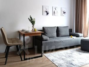 Сдаётся 1-комнатная квартира площадью 34 кв.м. с евроремонтом на 8 этаже в 9-этажном доме. Из техники есть: Телевизор Духовой шкаф Стиральная машина Холодильник Посудомоечная машина Кондиционер Дом - монолитный, окна выходят на улицу. В подъезде 1 лифт - 0 грузовых и 1 пассажирский. Во дворе есть бесплатная парковка. Коммунальные услуги по счетчикам оплачиваются дополнительно. Мы проверили документы на квартиру и самостоятельно сделали фотографии и 3D-тур. Без комиссии агенту: цена в объявлении окончательная. За эту квартиру можно платить даже кредитной картой и получать кэшбэк от банка.Предоплата за 1 месяц