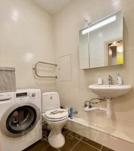 Уютная студия с двумя окнами в бежево-голубых тонах, продуманные планировка, дизайн и меблировка. Заботливо укомплектована бытовой техникой - стиральная машина, холодильник, СВЧ, большой телевизор со Smart-TV, кондиционер, чайник, фильтр для питьевой воды, утюг, пылесос. Проведен интернет. Сдается на длительный срок.Предоплата за 1 месяцЗалог 50 000 ₽
