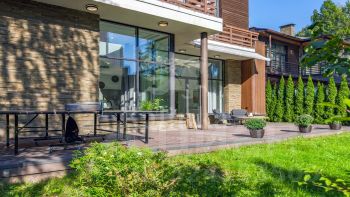 Лот 41262. Дом под ключ 660 кв.м. на участке 15.00 соток. Количество спален: 5. Коттеджный посёлок ''Береста'', Новорижское шоссе, 1 км от МКАД. Объект расположен в охраняемом коттеджном поселке на берегу водохранилища - развитая инфраструктура, транспортная доступность, респектабельное окружение.Участок в тихой части поселка c ландшафтным дизайном: хвойные деревья, небольшая березовая роща, фруктовый сад, цветники, дорожки из натурального камня, газон. На участке имеется беседка с зоной барбекю (горячая и холодная вода, санузел). Отапливаемый гараж на 3 автомобиля с полностью оборудованной квартирой для персонала с отдельным входом. Гостевая парковка. Автоматическое открывание въездных ворот. Установлена система автоматического полива и индивидуальное освещение участка. Лаконичная продуманная планировка, интерьеры выполнены в легком классическом стиле. В отделке использовались качественные натуральные материалы - мрамор, гранит, художественная штукатурка, мозаика, позолота, художественный паркет из дуба, карельской березы и красного дерева, кованные элементы. Вся мебель, техника, люстры и текстиль от ведущих мировых производителей. Фасады дома и построек выполнен из натурального шамота, на крышах - медная черепица TEGOLA (Италия) Цоколь: сауна KLAFS (Германия), хамам, душевая с гидромассажем, SPA HotSpring (США), тренажерный зал, домашний кинотеатр с техникой Hi End, гардеробная комната для хранения сезонной и спортивной одежды, прачечная оборудованная техникой MIELE (Германия), санузел, котельная.1 этаж: холл, гостиная с камином и зимним садом, имеющая выход на участок, гостевая спальня с индивидуальным санузлом, кабинет для приемов, бильярдная, кухня-столовая с кладовой, гостевой санузел.2 этаж: хозяйский блок состоящий из спальни, будуара с камином, индивидуального санузла, гардеробной, большая гостиная с зимним садом, 2 спальни, имеющие индивидуальные санузлы и гардеробные.Мансарда: 2 спальни, библиотека-кабинет, кальянная в восточном стиле, санузел.Предоплата за 1 месяцЗалог 900 000 ₽