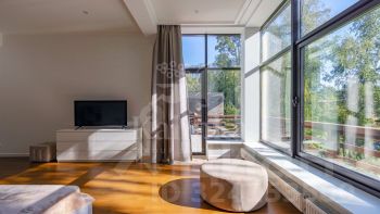 Лот 41262. Дом под ключ 660 кв.м. на участке 15.00 соток. Количество спален: 5. Коттеджный посёлок ''Береста'', Новорижское шоссе, 1 км от МКАД. Объект расположен в охраняемом коттеджном поселке на берегу водохранилища - развитая инфраструктура, транспортная доступность, респектабельное окружение.Участок в тихой части поселка c ландшафтным дизайном: хвойные деревья, небольшая березовая роща, фруктовый сад, цветники, дорожки из натурального камня, газон. На участке имеется беседка с зоной барбекю (горячая и холодная вода, санузел). Отапливаемый гараж на 3 автомобиля с полностью оборудованной квартирой для персонала с отдельным входом. Гостевая парковка. Автоматическое открывание въездных ворот. Установлена система автоматического полива и индивидуальное освещение участка. Лаконичная продуманная планировка, интерьеры выполнены в легком классическом стиле. В отделке использовались качественные натуральные материалы - мрамор, гранит, художественная штукатурка, мозаика, позолота, художественный паркет из дуба, карельской березы и красного дерева, кованные элементы. Вся мебель, техника, люстры и текстиль от ведущих мировых производителей. Фасады дома и построек выполнен из натурального шамота, на крышах - медная черепица TEGOLA (Италия) Цоколь: сауна KLAFS (Германия), хамам, душевая с гидромассажем, SPA HotSpring (США), тренажерный зал, домашний кинотеатр с техникой Hi End, гардеробная комната для хранения сезонной и спортивной одежды, прачечная оборудованная техникой MIELE (Германия), санузел, котельная.1 этаж: холл, гостиная с камином и зимним садом, имеющая выход на участок, гостевая спальня с индивидуальным санузлом, кабинет для приемов, бильярдная, кухня-столовая с кладовой, гостевой санузел.2 этаж: хозяйский блок состоящий из спальни, будуара с камином, индивидуального санузла, гардеробной, большая гостиная с зимним садом, 2 спальни, имеющие индивидуальные санузлы и гардеробные.Мансарда: 2 спальни, библиотека-кабинет, кальянная в восточном стиле, санузел.Предоплата за 1 месяцЗалог 900 000 ₽