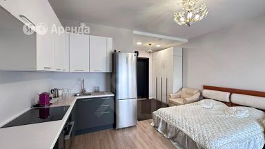 Замечательная квартира-студия, выполнен современный капитальный ремонт, в комнате 2-х спальный раскладной диван-кровать, встроенная кухня, встроенная импортная бытовая техника, проведен высокоскоростной интернет, встроенный шкаф-купе для одежды в прихожей, ванная с хорошим ремонтом, установлена современная сантехника, ванная. Соседи приличная публика, тихие, спокойные. Рассматриваем арендаторов БЕЗ детей и животных!Лучше звонить, чем писать!Предоплата за 1 месяцЗалог 45 000 ₽