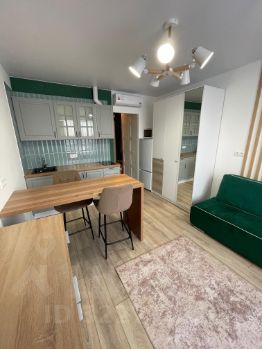 Собственник!Сдам студию 31 кв.м., с дизайнерским ремонтом. Квартира полностью укомплектована всей необходимой мебелью и бытовой техникой.Двуспальная кровать 160 см., диван, шкаф, два стеллажа, полноценная кухня.Кондиционер, стиральная и посудомоечная машины, духовой шкаф, варочная панель и т.д. Сдается на длительный срок от 11 месяцев, для проживания аккуратного и чистоплотного человека или пары. Без детей и животных.Предоплата за 1 месяцЗалог 55 000 ₽