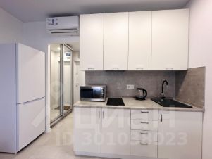 Сдаётся студия площадью 24 кв.м. с дизайнерским ремонтом на 8 этаже в 9-этажном доме. Из техники есть: Телевизор Стиральная машина Холодильник Бойлер Микроволновка Пылесос Дом - монолитный, окна выходят на улицу. В подъезде 1 лифт - 1 грузовой и 0 пассажирских. Во дворе есть бесплатная парковка. Коммунальные услуги по счетчикам оплачиваются дополнительно.Предоплата за 1 месяцЗалог 38 100 ₽