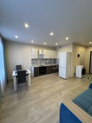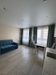 Предложение для одного человека или семейной пары. Вашему вниманию предлагается, прекрасная квартира, с качественным ремонтом в новом доме ЖК Спутник. Квартира студийного плана. Мебель в квартире современная: диван, встроенный кухонный гарнитур, шкаф для одежды, обеденная группа и пр. Вся необходимая бытовая техника от ведущих производителей: холодильник , стиральная машина автомат, микроволновка, духовой шкаф, варочная панель. СУ совмещённый, застеклённая лоджия, окна во двор и на лес. Новый дом, презентабельная входная группа. Рядом магазины, торговые и развлекательные центры, парк, набережная с пляжом, сразу за домом. В 2026-27 году , в двух минутах от дома, откроется новая станция метро. Звоните уважаемые клиенты, показ по договоренности.Предоплата за 1 месяцЗалог 50 000 ₽