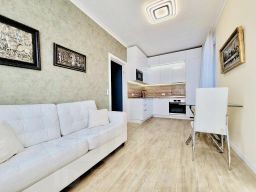 Для взыскательных арендаторов! Редкое предложение!Дизайнерская студия в ЖК ''Sky Спутник'' в пешей доступности от м. Строгино! 29/33 эт. нового современного высотного дома!Возможна аренда на 6 месяцев, 12 месяцев и на более длительный срок (более года).Квартира комфортная, уютная, стильная, в неё можно сразу влюбиться и захочется остаться)) Есть всё для комфортной жизни, всё продумано и всё на своих местах.Студия просторная - общая площадь 33 м2, кухня-гостиная 25 м2, вид из окна на рощу, просторный совмещенный санузел, большая прихожая с вместительным зеркальным шкафом. Квартира полностью готова к въезду и комфортному проживанию. В КУХНЕ-ГОСТИНОЙ:- кухонный гарнитур, - из техники: варочная панель, вытяжка, духовой шкаф, холодильник, микроволновая печь, посудомоечная машина, электро-чайник, - стильный стол, стулья, - большой шикарный раскладной диван,- тумба под ТВ,- телевизор,- стенка со шкафами, открытыми и закрытыми полками, - постеры, предметы декора, стильная люстра, красивые хорошо подобранные шторы - всё это создаёт уют и неповторимую домашнюю атмосферу. В ПРИХОЖЕЙ:- вместительный зеркальный шкаф-купе для вещей и одежды, с полками, штангами и и.д., - рабочее место (стол, стул),- вешалка, пуфик, обувница. Полностью оборудованный санузел - ванна, унитаз, раковина, полотенцесушитель, два навесных шкафа (один из них с зеркалом), полноразмерная стиральная машина на 6 кг., корзина для белья, на полу уютный теплый коврик. Новый современный высотный дом со скоростными лифтами и подземным паркингом, презентабельные входные группы, круглосуточная охрана. Жилой квартал с дворами без машин, с оригинальной концепцией организации дворового пространства. Современная городская среда с газонами, озеленением и ландшафтным дизайном. Есть детские площадки, спортивные тренажеры для взрослых, места для отдыха и многое другое. Необходимая инфраструктура в наличии - супермаркеты Мираторг, ВкусВилл, Пятёрочка, магазины у дома, вся сфера услуг, кофейни, кафе, рестораны, пекарни, аптеки, пункты выдачи и т.д. Два муниципальных детских сада. Своя школа в ЖК. Рядом с домом находится Липовая роща - отличный благоустроенный парк площадью 57 Га для прогулок, пробежек и т.д. (см. фото). Чистая экология запада Москвы. Чистые водоемы. В 2 минутах ходьбы - Живописная бухта с современными зонами отдыха и пляжами. Рядом Серебряный Бор, Строгинская пойма. Преобладающая роза ветров (из области в Москву) обеспечивает приток чистого воздуха.Отличная транспортная доступность. До м. Строгино 25 минут пешком. Также курсирует транспорт до м. Строгино, Мякинино, Крылатское, Щукинская. Для автомобилистов - прямой выезд на МКАД, до центра Москвы по проспекту Маршала Жукова 20 минут езды (без светофоров), рядом Новорижское шоссе. Цена 50 000 руб./мес. + коммуналка. Залог 50 000 руб. Комиссия 50%.Предоплата за 1 месяцЗалог 50 000 ₽