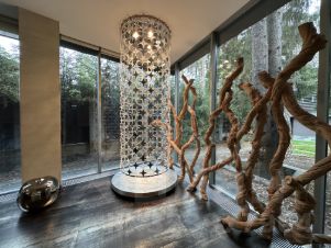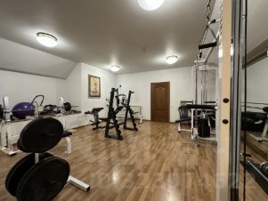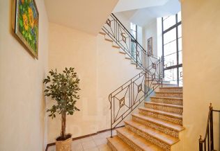 ID 542228. КП Санаторий Барвиха/Сады Майендорф. Коттедж с авторским дизайном интерьера в лучшем поселке на Рублевке. Грамотная планировка: 4 спальни, кабинет, гостиная, столовая, каминный зал, сауна, бильярд, спортивный зал, отдельный вход в блок для персонала (2 комнаты), изолированный от хозяйской части. Бассейн находится в отдельном доме.Участок 30 соток. Отдельно на участке расположены спортивный павильон (бассейн, сауна, санузел) и детская площадка.Планировка дома:Цокольный этаж: 2 комнаты с отдельным входом, гараж на 2 автомобиля, блок для обслуживающего персонала (1-комнатная квартира),1 этаж: студия: гостиная - столовая - кухня, санузел,2 этаж: 4 спальни, 2 санузла, кабинет,3 этаж: сауна, спортзал, бильярд, санузел.Номер объекта: #1/542228/13364Залог 2 500 000 ₽