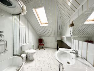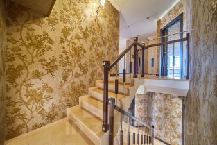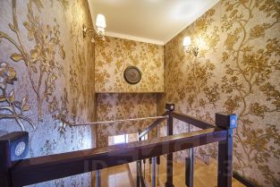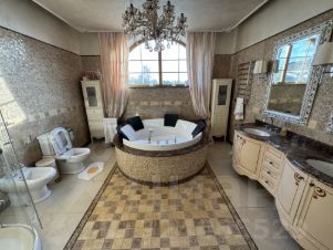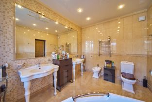 ID 542981. КП Никольская Слобода. Шикарный дом в охраняемом поселке, в доме 5 спален, просторная каминная зона с видом на участок. Планировка дома: 1 этаж: холл, гардеробная, гостиная, кухня, санузел, гостевая спальня, столовая, домашний кинотеатр. 2 этаж: четыре спальни со своими ванными комнатами, три гардеробные, библиотека, кабинет. Цоколь: два санузла, SPA, массажная, постирочная, тренажерный зал, хаммам.Номер объекта: #1/542981/13364