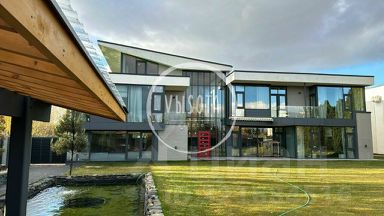 Лот 57898. Дом под ключ 540 кв.м. на участке 25.00 соток. Количество спален: 5. Коттеджный посёлок ''Шато Соверен'', Новорижское шоссе, 18 км от МКАД. Участок правильной прямоугольной формы, газон, дорожки, парковка для автомобилей, ночная подсветка. Автоматическая система поливки газона. Коттеджный поселок ''Шато Соверен''. Новый, современный дом в стиле Хай-Тек, с панорамным остеклением. Полностью под ключ, меблирован, оборудован необходимой бытовой техникой. Конструктив, фундамент/перекрытия монолитные, стены кирпич, плоская кровля. Интерьер дизайнерский, использованы дорогостоящие материалы, со вкусом подобрана мебель и аксессуары. В доме гостиная-кухня-столовая, пять спален, четыре санузла, зона СПА с сауной. Инженерия: установлена система ''умный дом'', приточно-вытяжная вентиляция, кондиционирование, теплые полы, интернет и другое. Поселок строго охраняемый, прогулочные зоны, детские площадки. Хорошая транспортная доступность.Предоплата за 1 месяцЗалог 1 500 000 ₽