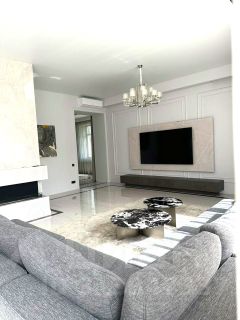 Дом под ключ в современном стиле в коттеджном поселке Никольская Слобода. Площадь дома 2300 кв.м.. Дом полностью готов к проживанию. Выполнена отделка под ключ. Планировкой предусмотрено 2 этажа, 3 уровня, 8 спален. Планировка дома: цоколь - домашний кинотеатр, оружейная, винный погреб, профессиональная кухня, кладовые, постирочная, вспомогательные помещения, гараж на 6 м/м, сезонная гардеробная, бойлерная, 1 уровень - правое крыло: холл, гардеробная, с/у, кухня, столовая, гостиная с камином, кабинет с камином, гостевая спальня с с/у и гардеробной, зона спа: бассейн, хамам, массажная. из всех помещений есть выходы к открытому бассейну и барбекю, лифт левое крыло: гостиная с камином и выходом на террасу, спа зона: сауна, душ, с/у, зона отдыха, массажный кабинет, парикмахерская и гардеробная, 2 уровень - правое крыло: большой холл с выходом на террасу, гостиная, 4 спальни с с/у и гардеробными и выходом на террасу, лифт левое крыло: спортивный зал, зал для йоги, домашний кинотеатр, 3 спальни с с/у и гардеробными и с выходом на террасу. Дом расположен на участке общей площадью 113 соток. Территория благоустроена: есть ландшафтный дизайн.Участок прилесной. Помимо основного дома на участке расположены: на участке расположены: гараж на 6 м/м с квартирой для персонала (10 комнат с с/у, прачечная, кухня) и блоком для водителя (кухня, с/у), дом для охраны.. В доме есть комфортная SPA-зона с бассейном и сауной. В КП Никольская Слобода современные инженерные коммуникации: газоснабжение - магистральное, выделенная мощность электричества 50 Квт, водоснабжение - централизованное, канализация - центральная. Проведены телекоммуникации: интернет, кабельное tv, телефон. Инфраструктура района Клубный посёлок Никольская слобода расположен в окружении векового хвойно-лиственного леса в 10 километрах от МКАД. Занимает территорию 100 гектаров и находится в Опалиховском лесопарке со старинными усадьбами, прудами и благоустроенной зоной для отдыха.На территории поселка организованы детские площадки, площадки для занятий спортом и парковая территория с лавочками и беседками, прогулочными дорожками и искусственными прудами для рыбалки. В Никольской слободе есть вся необходимая для жизни инфраструктура. Детский сад, школа. Работает ресторан европейской кухни Круасан с открытой террасой на берегу пруда, и теннисный комплекс с 3 кортами для игры. Проводятся персональные тренировки для детей и взрослых. В пешей доступности конный клуб Новый век. Рядом с Никольской слободой торговые центры Павлово подворье, Княжий двор, студия красоты White fox, рестораны Царская трапеза и Озон, а для занятий спортом работает фитнес-клуб World Class и Fitness one. Служба безопасности в поселке круглосуточно следит за порядком, ведется видеонаблюдение, въезд строго по пропускам.Предоплата за 1 месяцЗалог 3 500 000 ₽