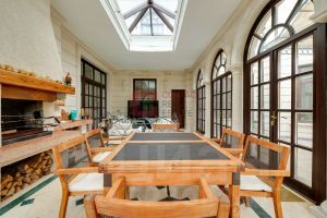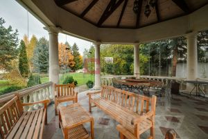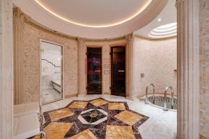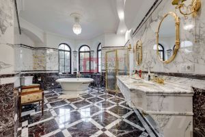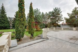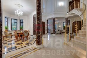 ID 8 204. Millennium Park. Загородная резиденция площадью 1300 м² расположена на полевом участке 31 сотка в тихой части поселка рядом с парковой аллеей. Фасад выполнен в европейском стиле, облицован натуральным камнем и штукатуркой двух оттенков, а изящные колонны, филенки и русты придают ему особый шарм. Современные интерьеры выдержаны в светлой гамме и отделаны с использованием оникса, гранита, мрамора и дерева. Каждая деталь продумана до мелочей — от дизайнерской мебели до премиальной бытовой техники. ''Умный дом'' и кондиционирование обеспечивают комфорт в любое время года.Планировка первого этажа включает просторный двухсветный каминный зал с элегантной лестницей, кухню с итальянским гарнитуром Valcucine, столовую, гостиную с кабинетом, застекленную веранду и 2 спальни. Отсюда можно выйти на террасу с видом на сад или пройти через панорамный коридор в SPA-зону с 11-метровым бассейном, сауной с печью Harvia, бильярдной и комнатой отдыха с баром. Второй этаж отведен под 4 спальни с гардеробными и большую игровую, а на цокольном уровне разместили дополнительную спальню и блок для персонала.Для машин предусмотрен встроенный двухместный гараж и парковка, рассчитанная на 6 автомобилей. На участке вдохните запах свежескошенной травы, прогуливаясь по мощеным дорожкам в тени высоких деревьев, и любуйтесь декоративными кустарниками и цветами у дома. Вечером можно собраться с близкими в уютном домике-барбекю с мангалом, казаном и большим обеденным столом, наслаждаясь теплой атмосферой под мягкой уличной подсветкой.Поэтажное описаниеЦоколь: блок для персонала с кухней-спальней, спальня, санузел, постирочная, техническое помещение.1-й уровень: холл, каминный зал, кухня, столовая, веранда, гостиная с кабинетом и санузлом, 2 гардеробные, санузел, гараж, терраса, 2 спальни, SPA-зона с бассейном, сауной, бильярдной, комнатой отдыха и душевой с санузлом.2-й уровень: холл, мастер-спальня с гардеробной, будуаром, санузлом и балконом, спальня с будуаром, санузлом и балконом, 2 спальни с гардеробной и санузлом, игровая.Залог 3 500 000 ₽