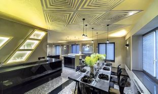 ID 11 137. Горки-1. Загородный особняк площадью 590 м² построен на лесном участке 21 сотка. Фасад выполнен из бревна и частично облицован коричневым камнем. В интерьере сохранена фактура дерева и использованы пастельные оттенки. Дом укомплектован мебелью Donghia, Bellavista, Poliform, установлены сантехника Аntonio Lupi, Dornbracht, немецкий кухонный гарнитур SieMatic с бытовой техникой Miele и Gaggenau. Планировка коттеджа включает 5 спален, просторную гостиную с выходом на террасу, кухню, спортзал и сауну. Предусмотрен встроенный гараж на 3 машины. На участке с ландшафтным дизайном построен дом для персонала 135 м², обустроены беседки и десткая площадка, вымощены дорожки и установлено уличное освещение.Поэтажное описание1-й уровень: сезонные гардеробные, спальня с санузлом, гараж, прачечная, спортзал, сауна.2-й уровень: холл, санузел, гардеробная, гостиная, кухня, 2 спальни, санузел с ванной комнатой, терраса.3-й уровень: мастер-спальня с гардеробной и ванной комнатой, спальня с санузлом.Залог 1 700 000 ₽