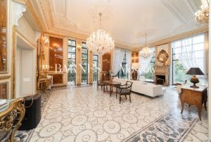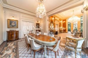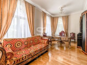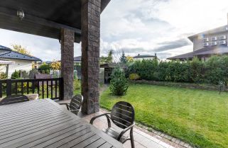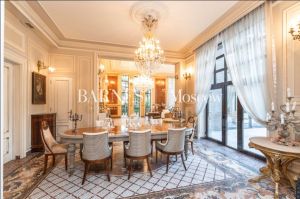 ID 8 204. Millennium Park. Загородная резиденция площадью 1300 м² расположена на полевом участке 31 сотка в тихой части поселка рядом с парковой аллеей. Фасад выполнен в европейском стиле, облицован натуральным камнем и штукатуркой двух оттенков, а изящные колонны, филенки и русты придают ему особый шарм. Современные интерьеры выдержаны в светлой гамме и отделаны с использованием оникса, гранита, мрамора и дерева. Каждая деталь продумана до мелочей — от дизайнерской мебели до премиальной бытовой техники. ''Умный дом'' и кондиционирование обеспечивают комфорт в любое время года.Планировка первого этажа включает просторный двухсветный каминный зал с элегантной лестницей, кухню с итальянским гарнитуром Valcucine, столовую, гостиную с кабинетом, застекленную веранду и 2 спальни. Отсюда можно выйти на террасу с видом на сад или пройти через панорамный коридор в SPA-зону с 11-метровым бассейном, сауной с печью Harvia, бильярдной и комнатой отдыха с баром. Второй этаж отведен под 4 спальни с гардеробными и большую игровую, а на цокольном уровне разместили дополнительную спальню и блок для персонала.Для машин предусмотрен встроенный двухместный гараж и парковка, рассчитанная на 6 автомобилей. На участке вдохните запах свежескошенной травы, прогуливаясь по мощеным дорожкам в тени высоких деревьев, и любуйтесь декоративными кустарниками и цветами у дома. Вечером можно собраться с близкими в уютном домике-барбекю с мангалом, казаном и большим обеденным столом, наслаждаясь теплой атмосферой под мягкой уличной подсветкой.Поэтажное описаниеЦоколь: блок для персонала с кухней-спальней, спальня, санузел, постирочная, техническое помещение.1-й уровень: холл, каминный зал, кухня, столовая, веранда, гостиная с кабинетом и санузлом, 2 гардеробные, санузел, гараж, терраса, 2 спальни, SPA-зона с бассейном, сауной, бильярдной, комнатой отдыха и душевой с санузлом.2-й уровень: холл, мастер-спальня с гардеробной, будуаром, санузлом и балконом, спальня с будуаром, санузлом и балконом, 2 спальни с гардеробной и санузлом, игровая.Залог 3 500 000 ₽
