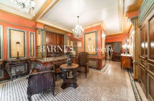 ID 542228. КП Санаторий Барвиха/Сады Майендорф. Коттедж с авторским дизайном интерьера в лучшем поселке на Рублевке. Грамотная планировка: 4 спальни, кабинет, гостиная, столовая, каминный зал, сауна, бильярд, спортивный зал, отдельный вход в блок для персонала (2 комнаты), изолированный от хозяйской части. Бассейн находится в отдельном доме.Участок 30 соток. Отдельно на участке расположены спортивный павильон (бассейн, сауна, санузел) и детская площадка.Планировка дома:Цокольный этаж: 2 комнаты с отдельным входом, гараж на 2 автомобиля, блок для обслуживающего персонала (1-комнатная квартира),1 этаж: студия: гостиная - столовая - кухня, санузел,2 этаж: 4 спальни, 2 санузла, кабинет,3 этаж: сауна, спортзал, бильярд, санузел.Номер объекта: #1/542228/13364Залог 2 500 000 ₽