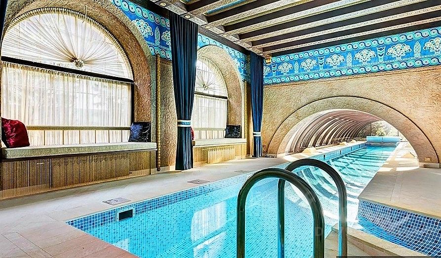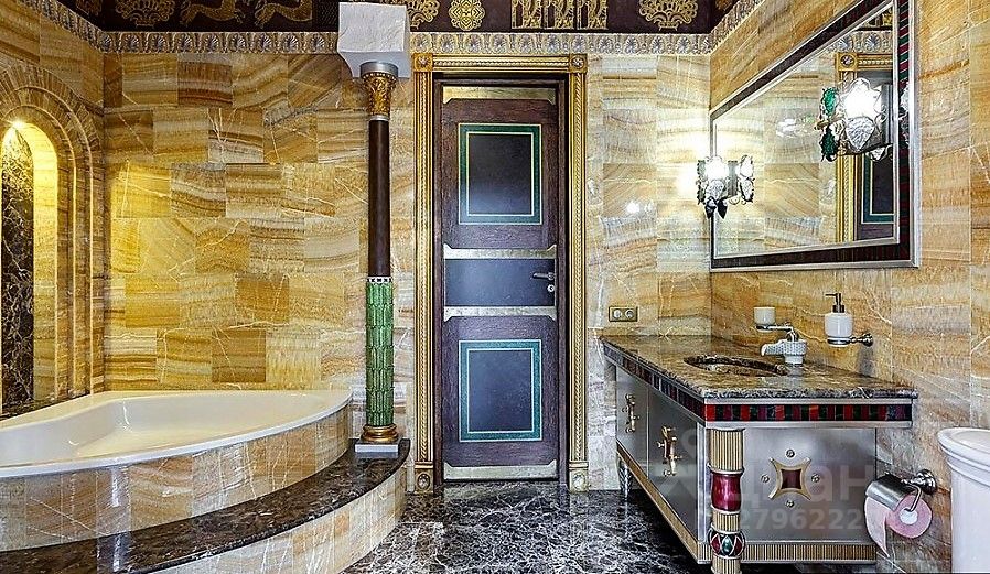 Дом расположен в охраняемом коттеджном поселке, с огороженным лесным участком в 30 соток. Его экстерьер и интерьер представляют собой совершенство современного дизайнерского искусства. Изящные выдержанные стилевые решения с элементами помпезности наполняют собой каждый квадратный метр. В отделке дома использованы дорогие материалы: сусальное золото, натуральный камень, мрамор. Все предметы интерьера выполнены по индивидуальным проектам. В комнатах авторская итальянская мебель от компании Francesco Molon, кухня от знаменитой фабрики TURRI. Экстерьер дома имеет приятное цветовое решение, а сам дом окружен красивым и функциональным ландшафтным дизайном. Территория оснащена охранной сигнализацией. Ворота автоматические. Дом имеет 4 уровня, включающие в себя все для комфортной жизни и полноценного отдыха: Тренажерный зал, гараж и бассейн Несколько гостиных и спален с гардеробными Блок для гостей и кабинет Высокотехнологичный домашний кинотеатр, бильярд и бар.