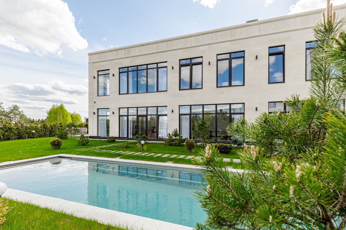 id 100430 Предлагается великолепная авторская РЕЗИДЕНЦИЯ ''ПОД КЛЮЧ'' НА ПЕРВОЙ ЛИНИИ ОЗЕРА в коттеджном поселке ''Никольская слобода'', расположенном в окружении заповедного Опалиховского лесопарка и двух чистых прудов.
