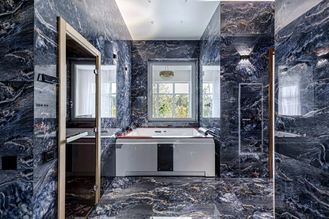 ПЛАНИРОВОЧНОЕ РЕШЕНИЕ: 1 этаж: гостиная С КАМИНОМ, совмещенная с обеденной зоной, кухня, ВЫХОД НА ТЕРРАСУ, спальня с гардеробной и ванной комнатами, комната отдыха, гостевой с/у, холл, две гардеробные, постирочная, котельная, блок для персонала. Есть гараж на 2 м/м. SPA-ЗОНА с сауной, хамамом и душевой. 2 этаж: 6 спален с собственными гардеробными и ванными комнатами, кабинет, холл. Эксплуатируемая кровля.