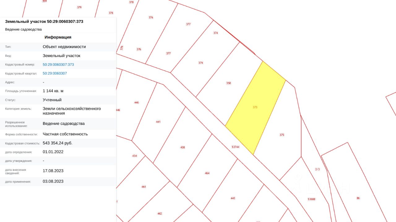 Kaдаcтровый номeр 50:29:0060307:373 (участок 139)