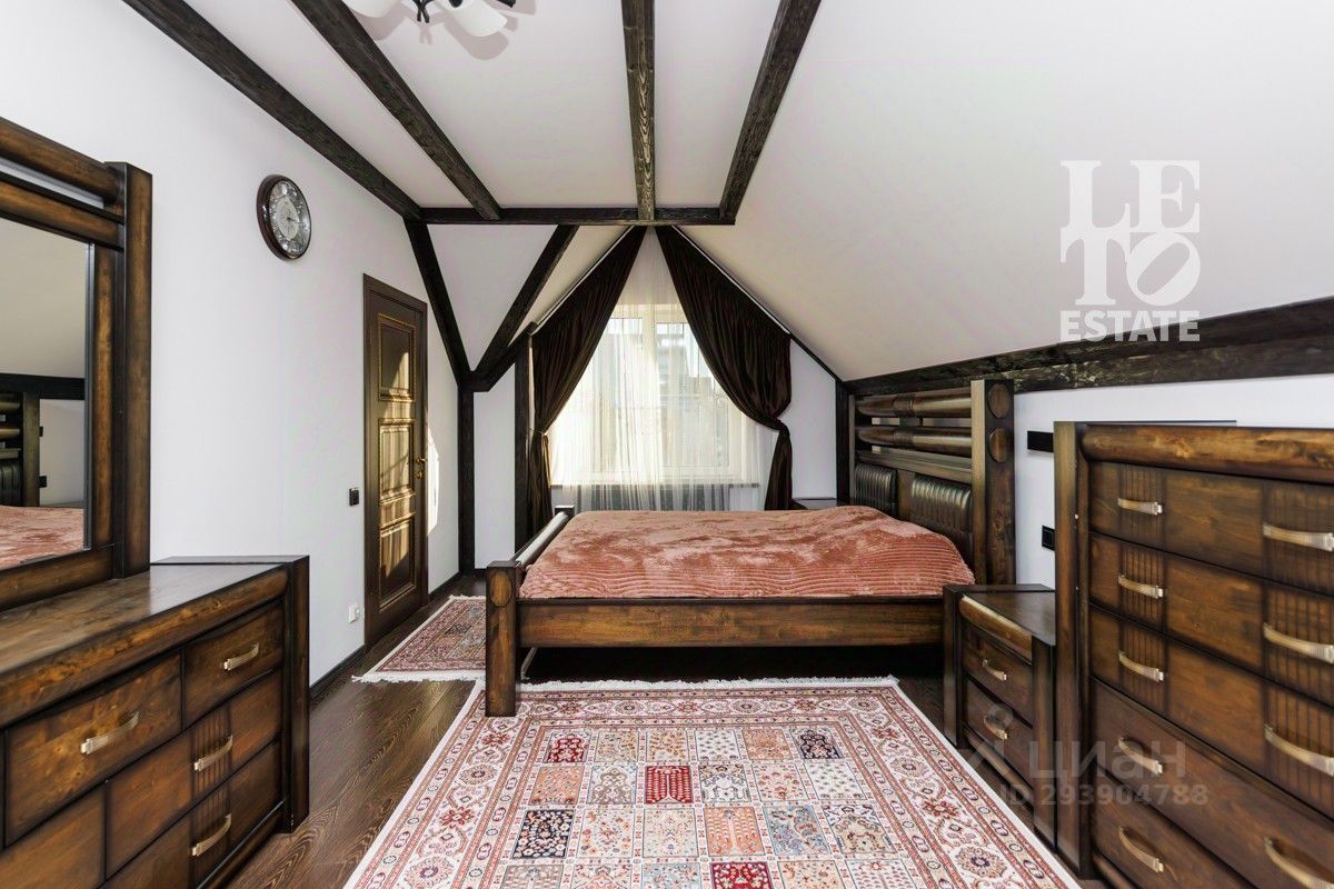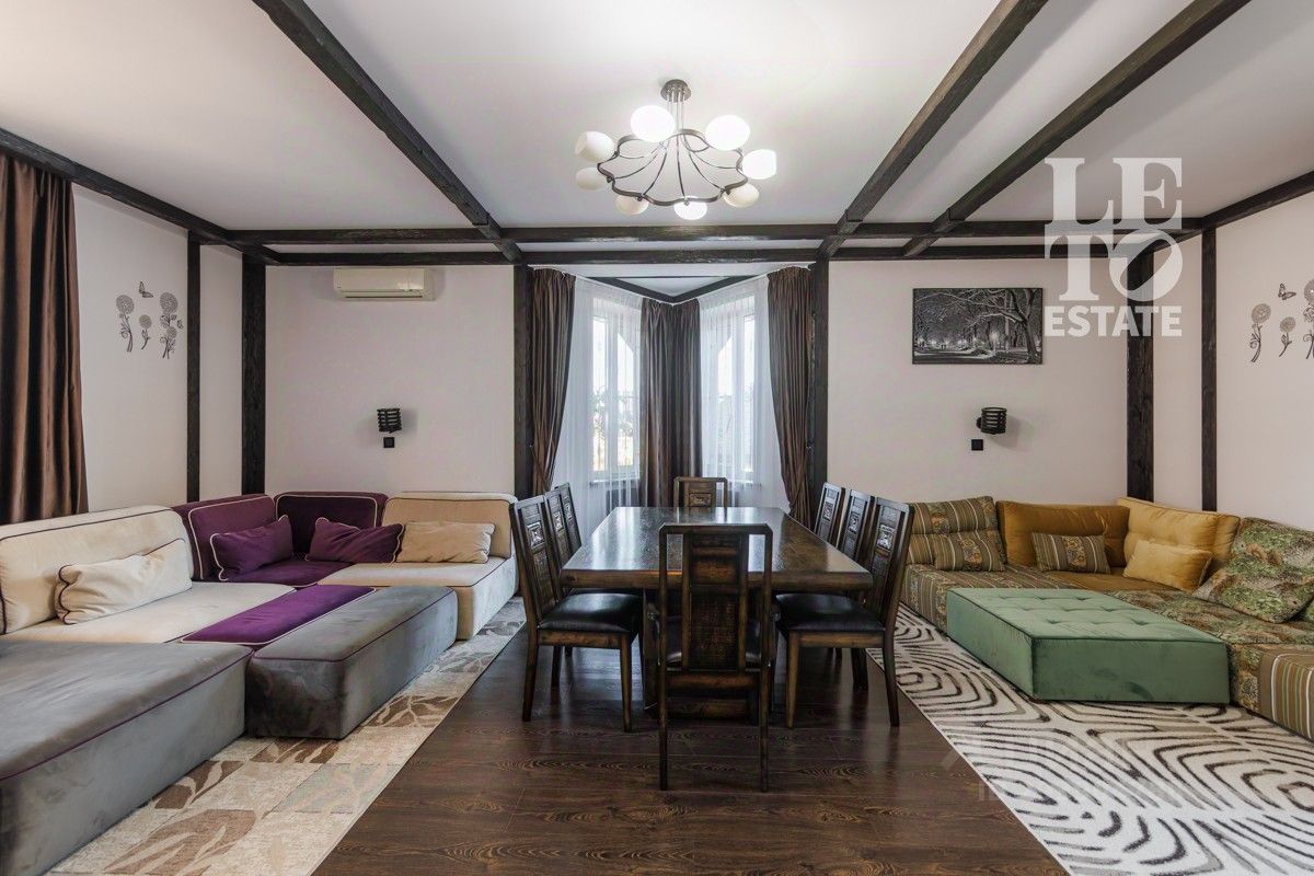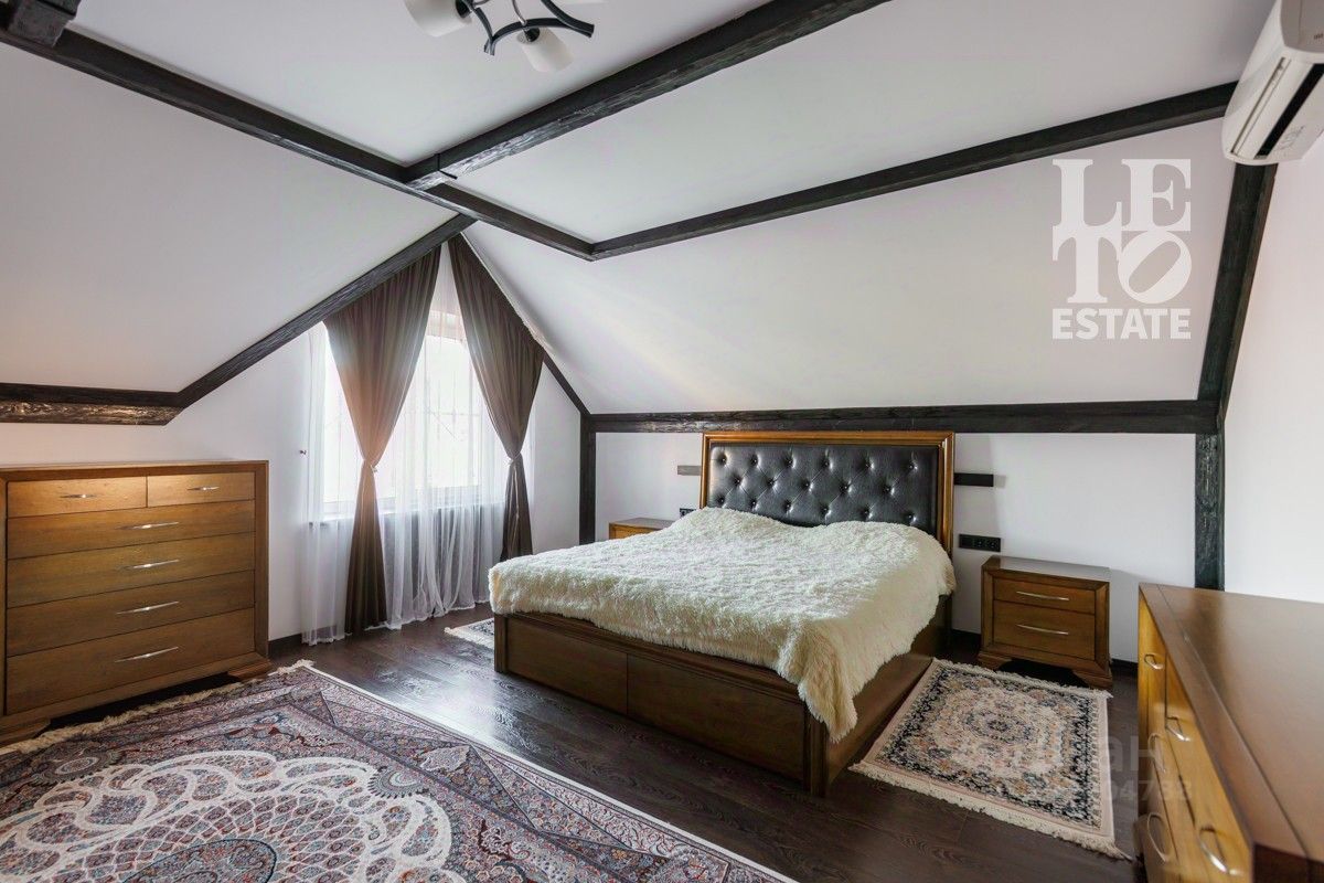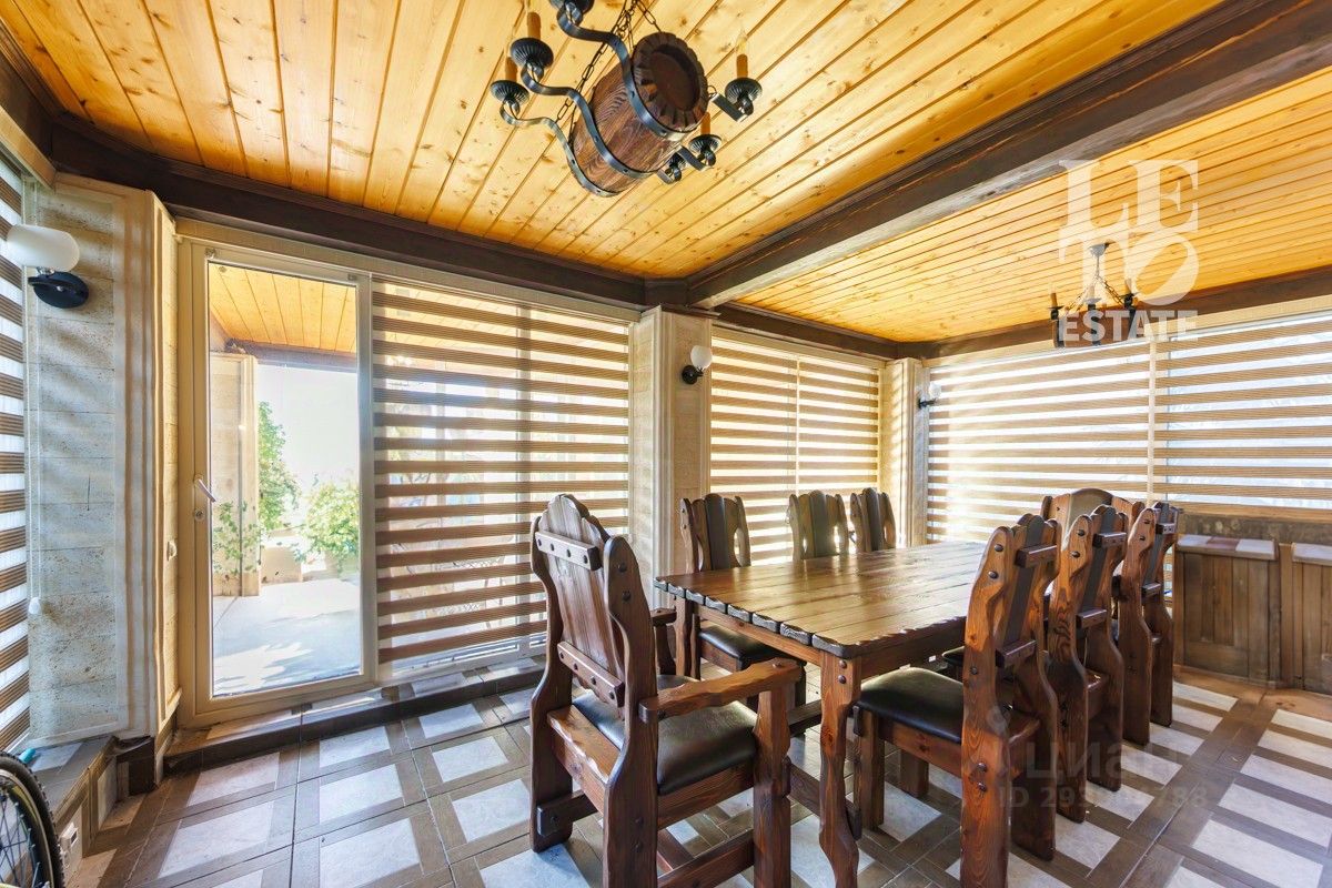 При входе в дом, нас встречает большая гостиная с вместительным столом для большой компании гостей. Далее по нашему пути, кухня-столовая со всей необходимой встроенной техникой производителей Bosch и Samsung. Подойдем к лестнице, которая ведет на второй и цокольный этажи, она сделана из натурального дерева с элементами ручной ковки. Поднимаемся по ней, и нас встречает спальня с индивидуальным дизайном. На втором этаже расположились еще 2 замечательные спальни, а также мастер-спальня с ванной и душевой, в которых вся мебель выполнена на заказ из качественных натуральных материалов. В доме установлено полное кондиционирование всех жилых помещений. Украшением интерьера является роскошный дровяной камин.