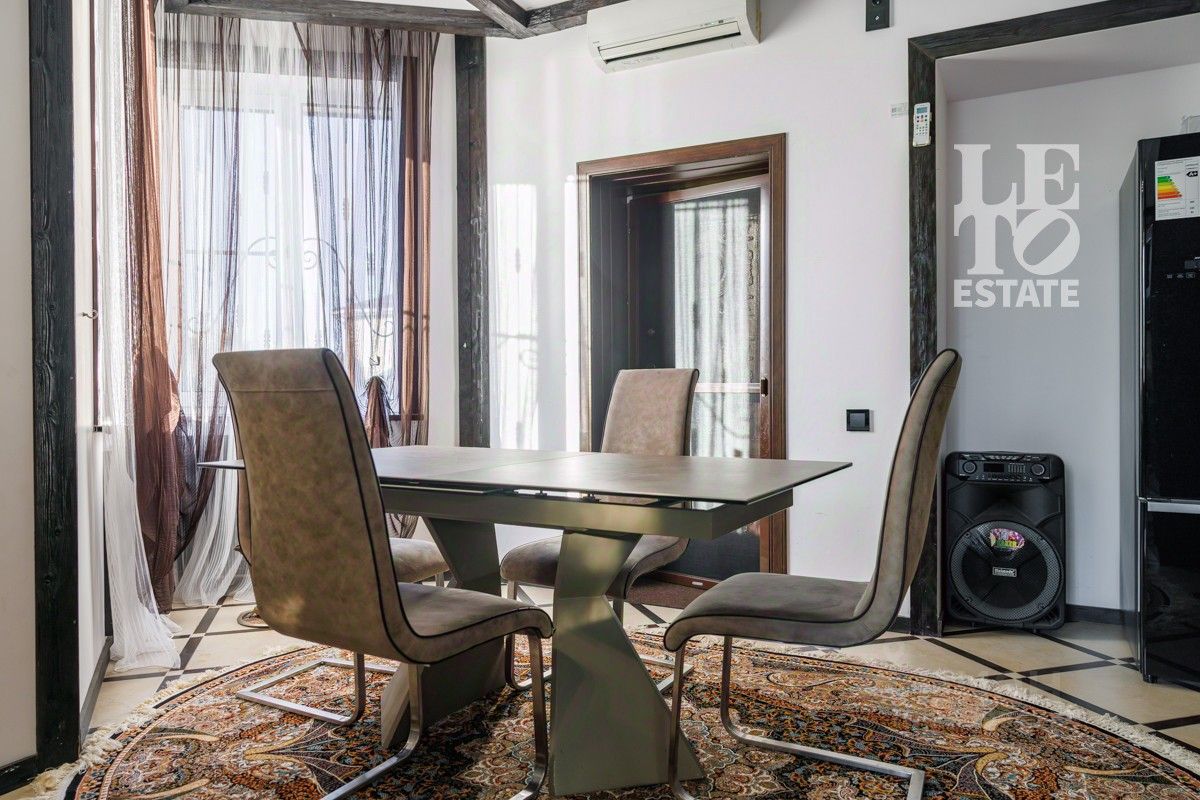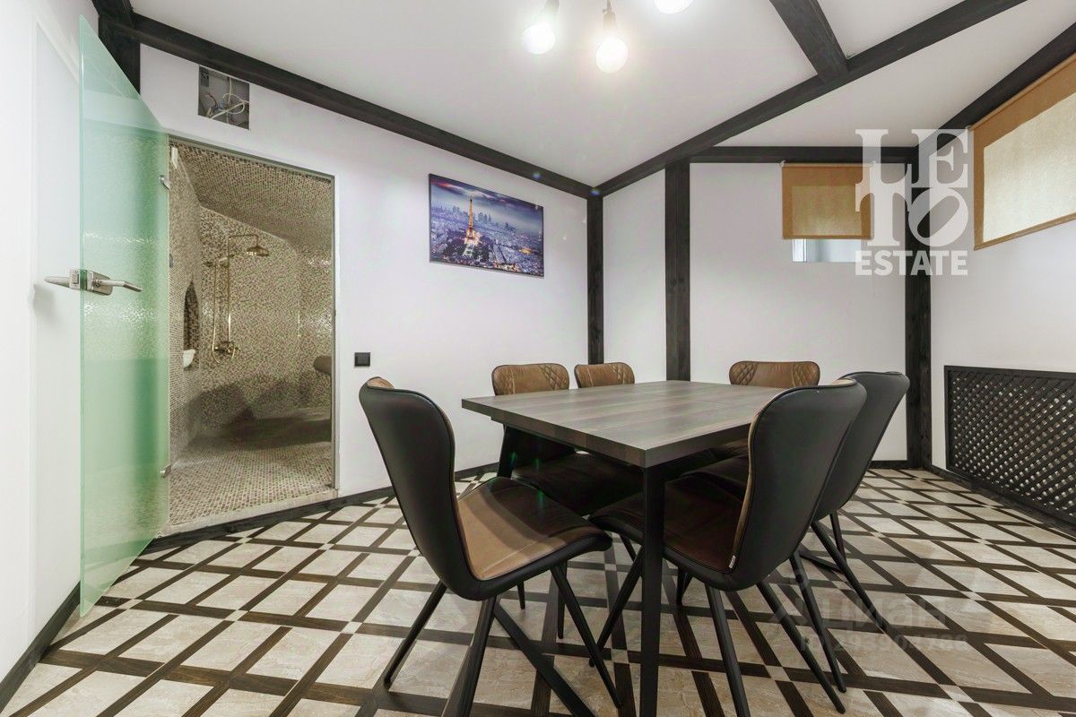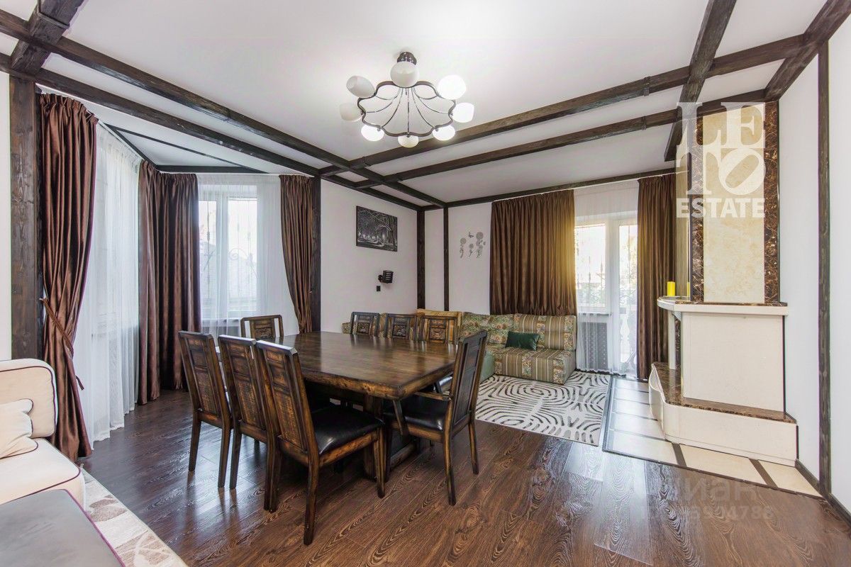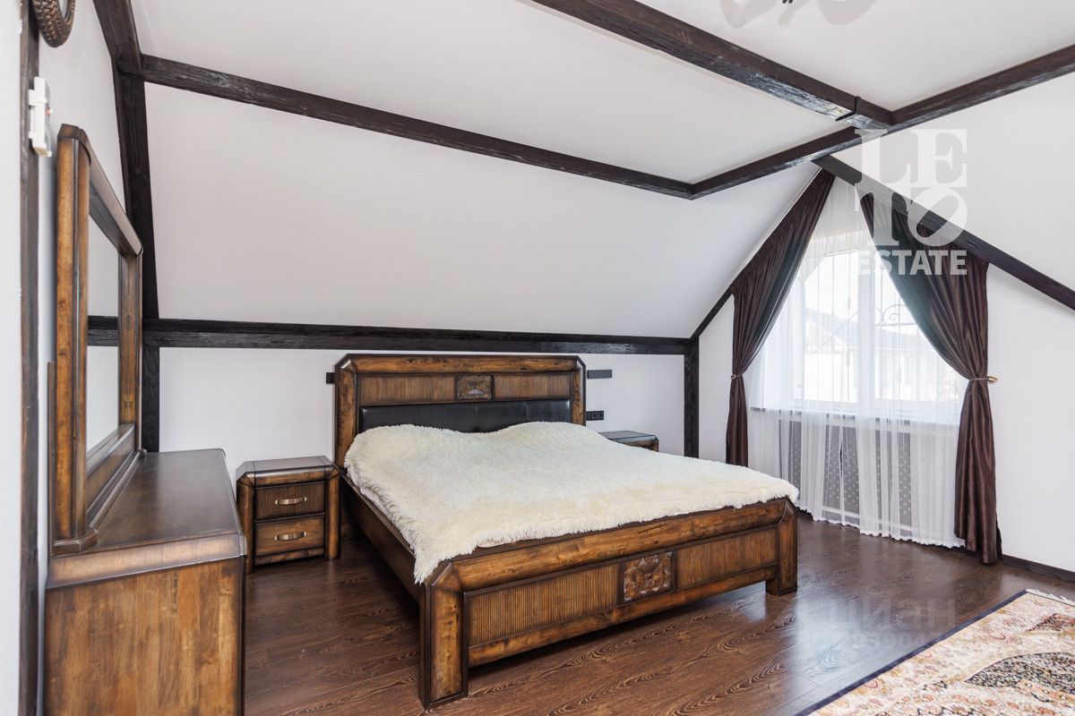 При входе в дом, нас встречает большая гостиная с вместительным столом для большой компании гостей. Далее по нашему пути, кухня-столовая со всей необходимой встроенной техникой производителей Bosch и Samsung. Подойдем к лестнице, которая ведет на второй и цокольный этажи, она сделана из натурального дерева с элементами ручной ковки. Поднимаемся по ней, и нас встречает спальня с индивидуальным дизайном. На втором этаже расположились еще 2 замечательные спальни, а также мастер-спальня с ванной и душевой, в которых вся мебель выполнена на заказ из качественных натуральных материалов. В доме установлено полное кондиционирование всех жилых помещений. Украшением интерьера является роскошный дровяной камин.