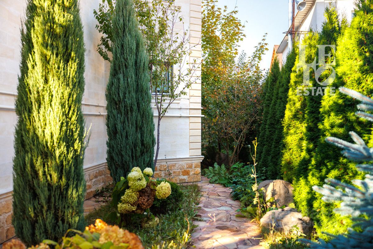 Территория участка полностью огорожена, въездная группа и гаражные ворота автоматические, дорожки выложены из натурального камня. По всей территории установлены: система видеонаблюдения, освещение, а также автополив и дренаж участка. Дополнительно на участке построена закрытая беседка с зоной отдыха и BBQ.