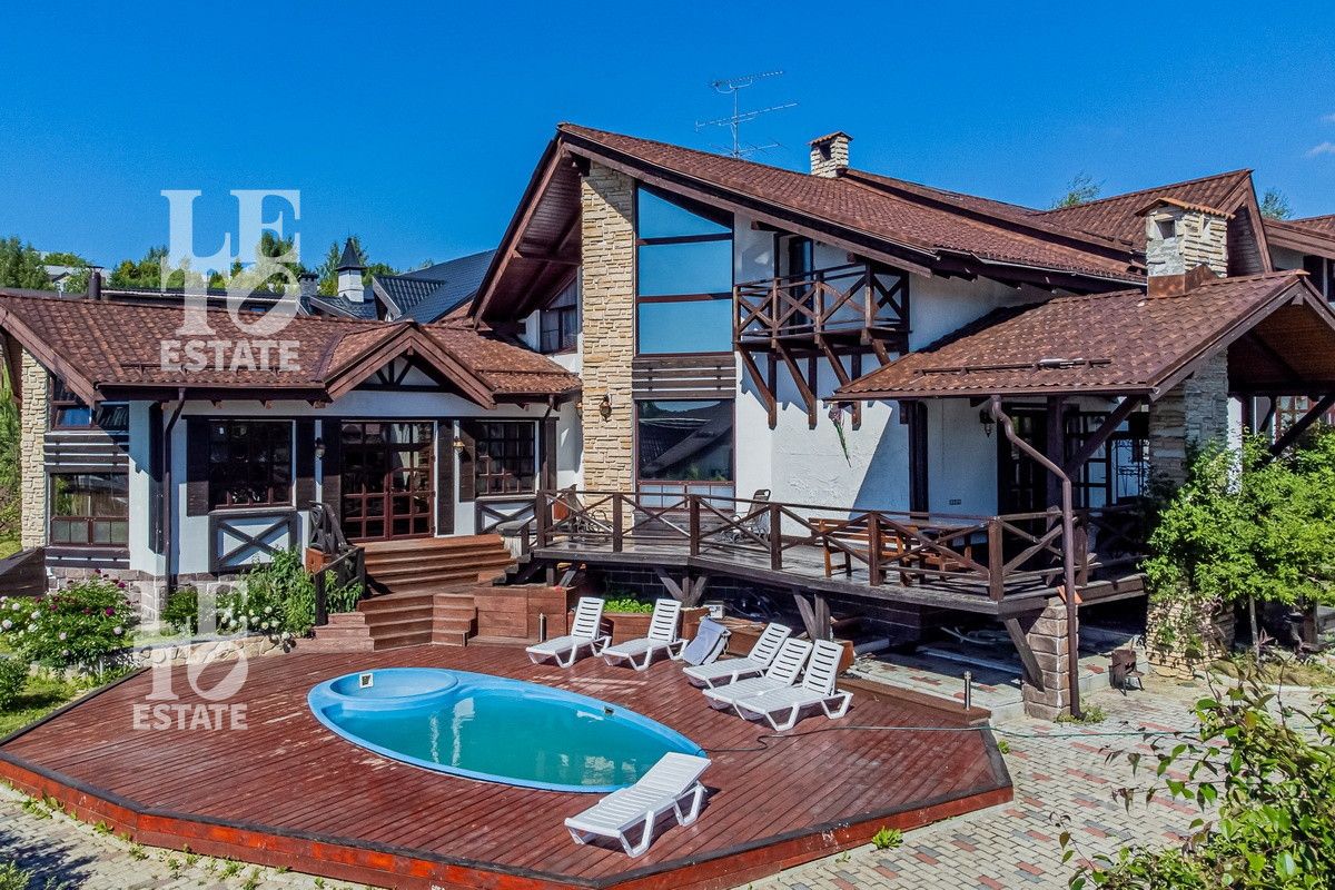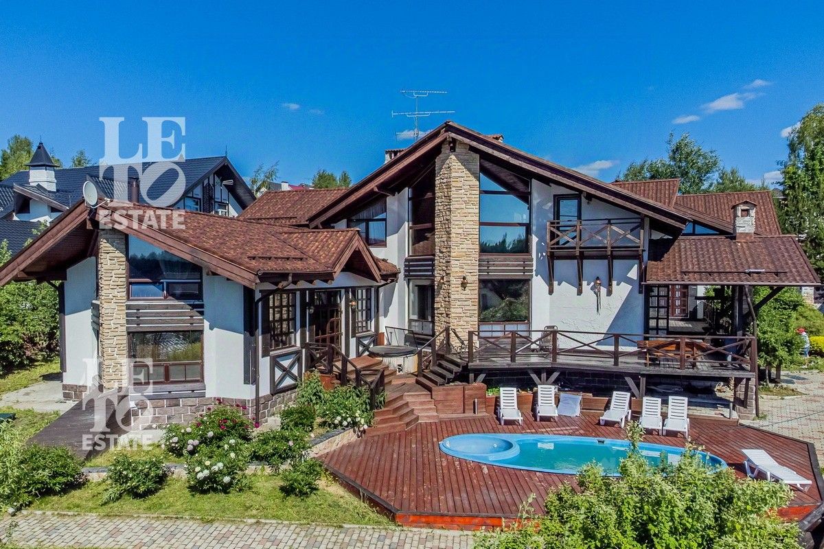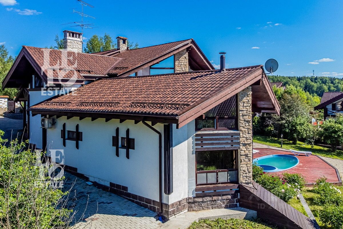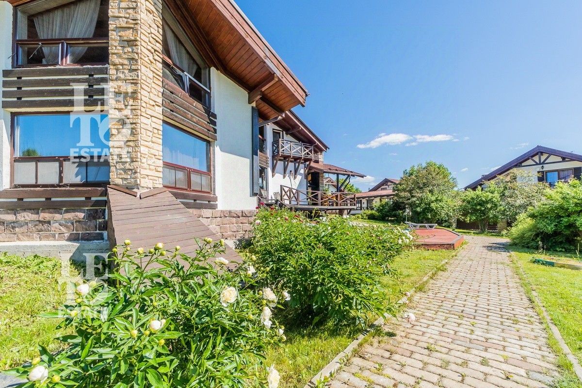 Арт. 60165112 Вашему вниманию представляется современный полностью готовый дом в стиле шале общей площадью 550 м2. Расположен на благоустроенном участке 22 сотки. Помимо основного дома на участке расположены: баня площадью 100 м2, дом охраны площадью 80 м2, 2 хозяйственных блока для хранения техники, беседка с зоной BBQ, а также уличная джакузи. На участке выполнен ландшафтный дизайн, дренаж, автополив, установлено декоративное освещение, дорожки вымощены брусчаткой.