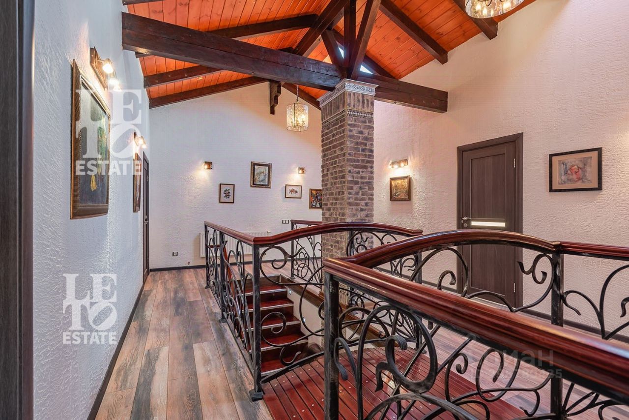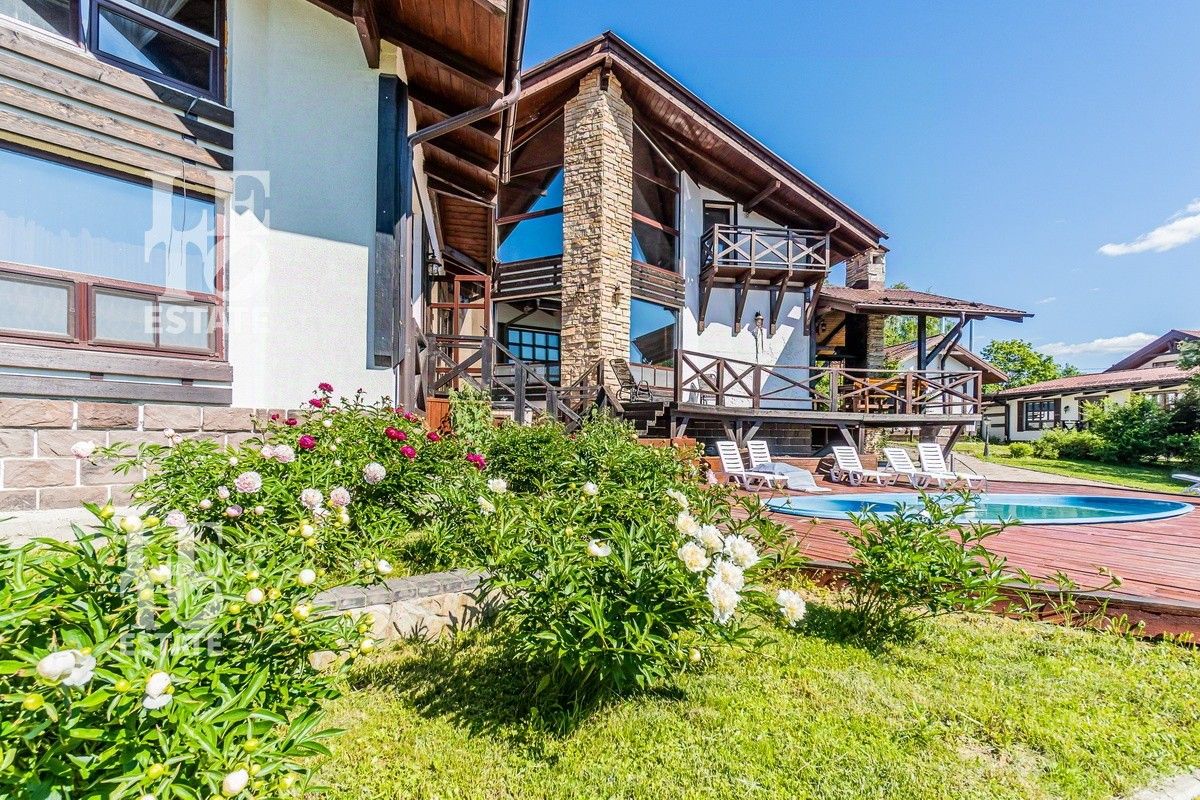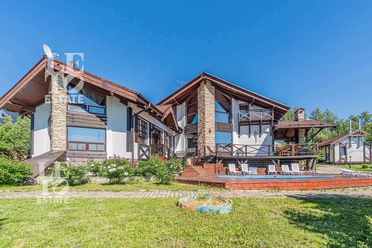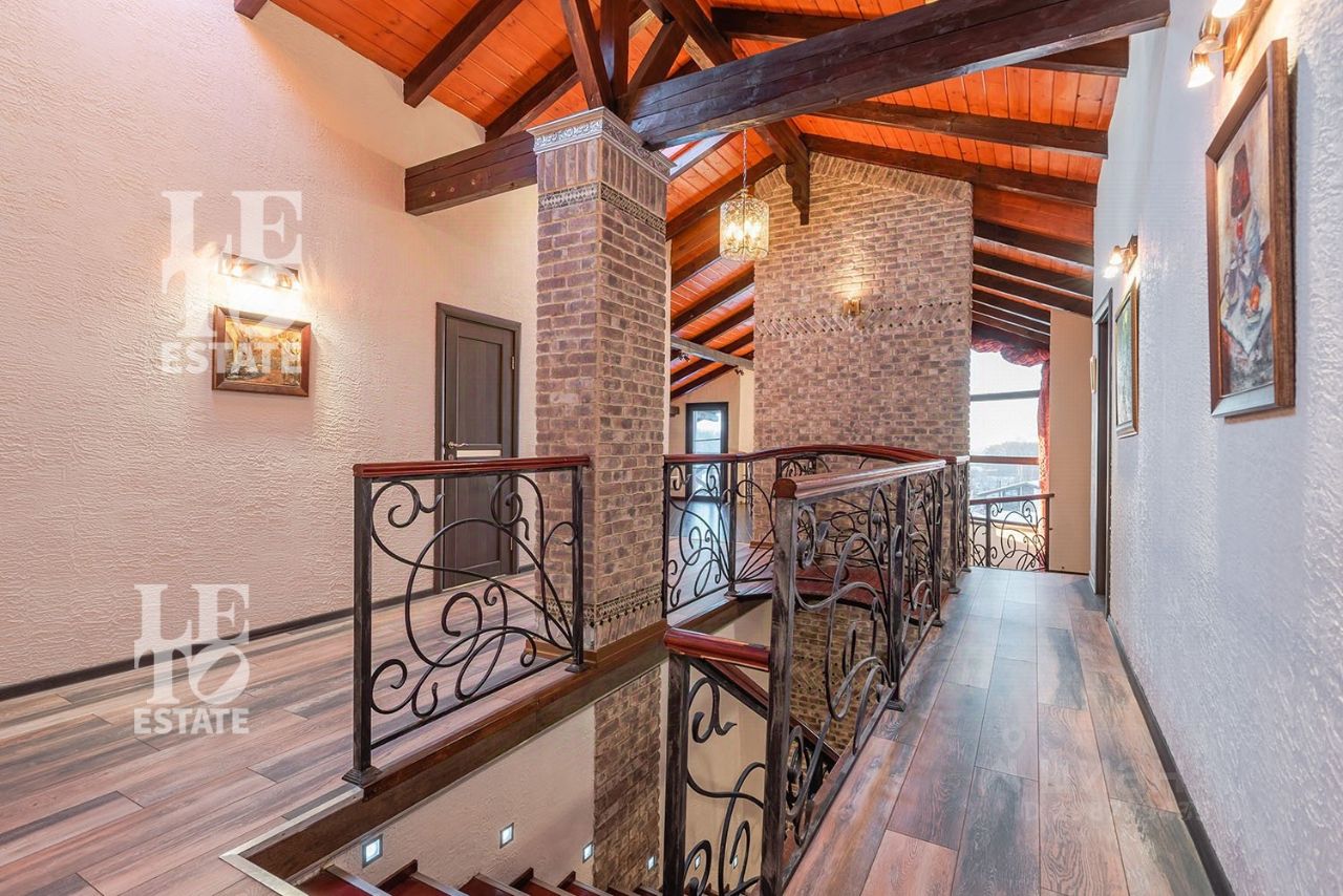 Арт. 60165112 Вашему вниманию представляется современный полностью готовый дом в стиле шале общей площадью 550 м2. Расположен на благоустроенном участке 22 сотки. Помимо основного дома на участке расположены: баня площадью 100 м2, дом охраны площадью 80 м2, 2 хозяйственных блока для хранения техники, беседка с зоной BBQ, а также уличная джакузи. На участке выполнен ландшафтный дизайн, дренаж, автополив, установлено декоративное освещение, дорожки вымощены брусчаткой.