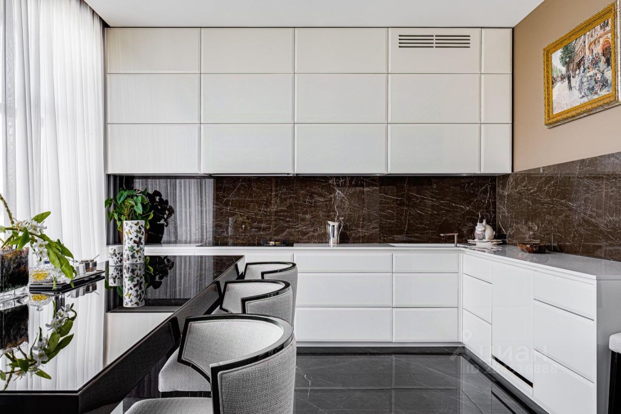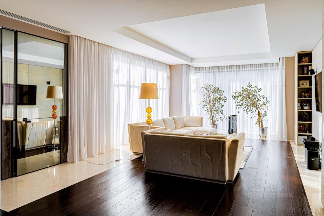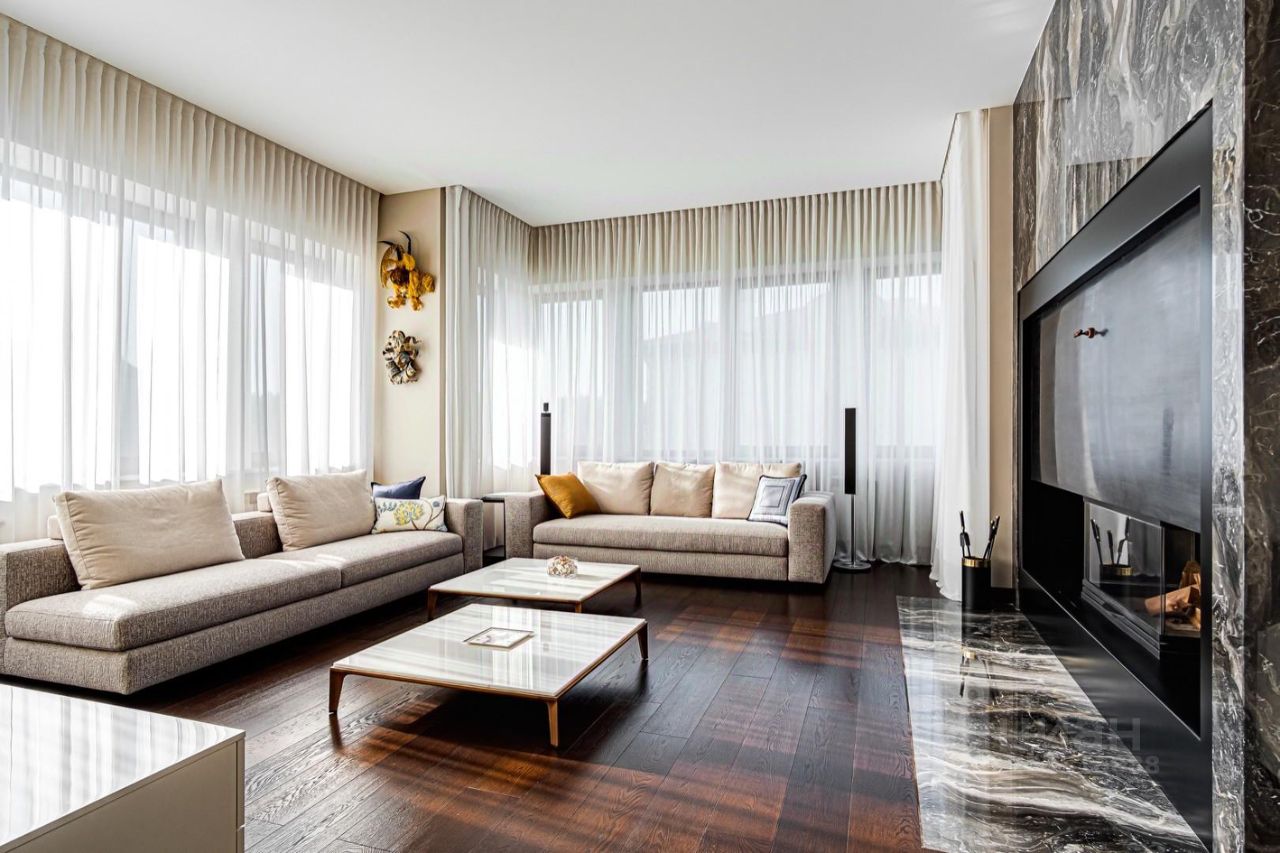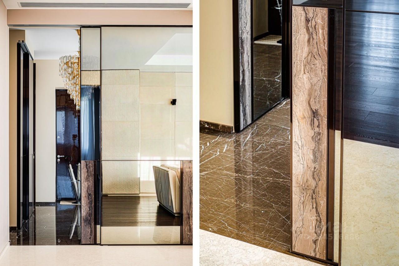 Внутренние интерьеры выполнены с применением высококачественных материалов. Паркет от итальянской фабрики IPF, керамогранит от итальянского премиум-производителя Fiandre. Раздвижные двери и стеновые панели от итальянской премиальной фабрики LONGHI. Сантехника топовых брендов: HPPE, Cielo, Gessi, Bisazza, Antonio Lupi, Duravit, Ideal Standard. Кухня фабрики Mittel.