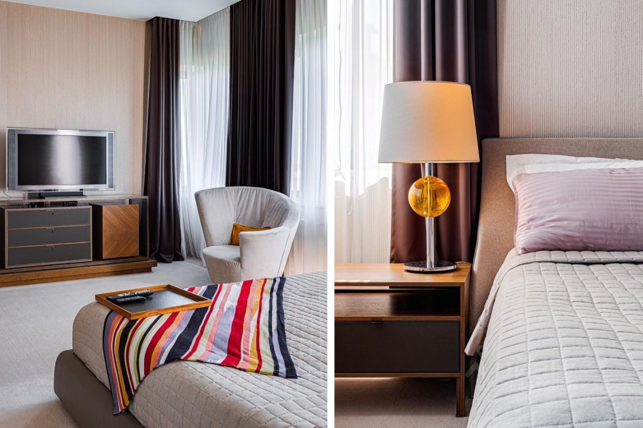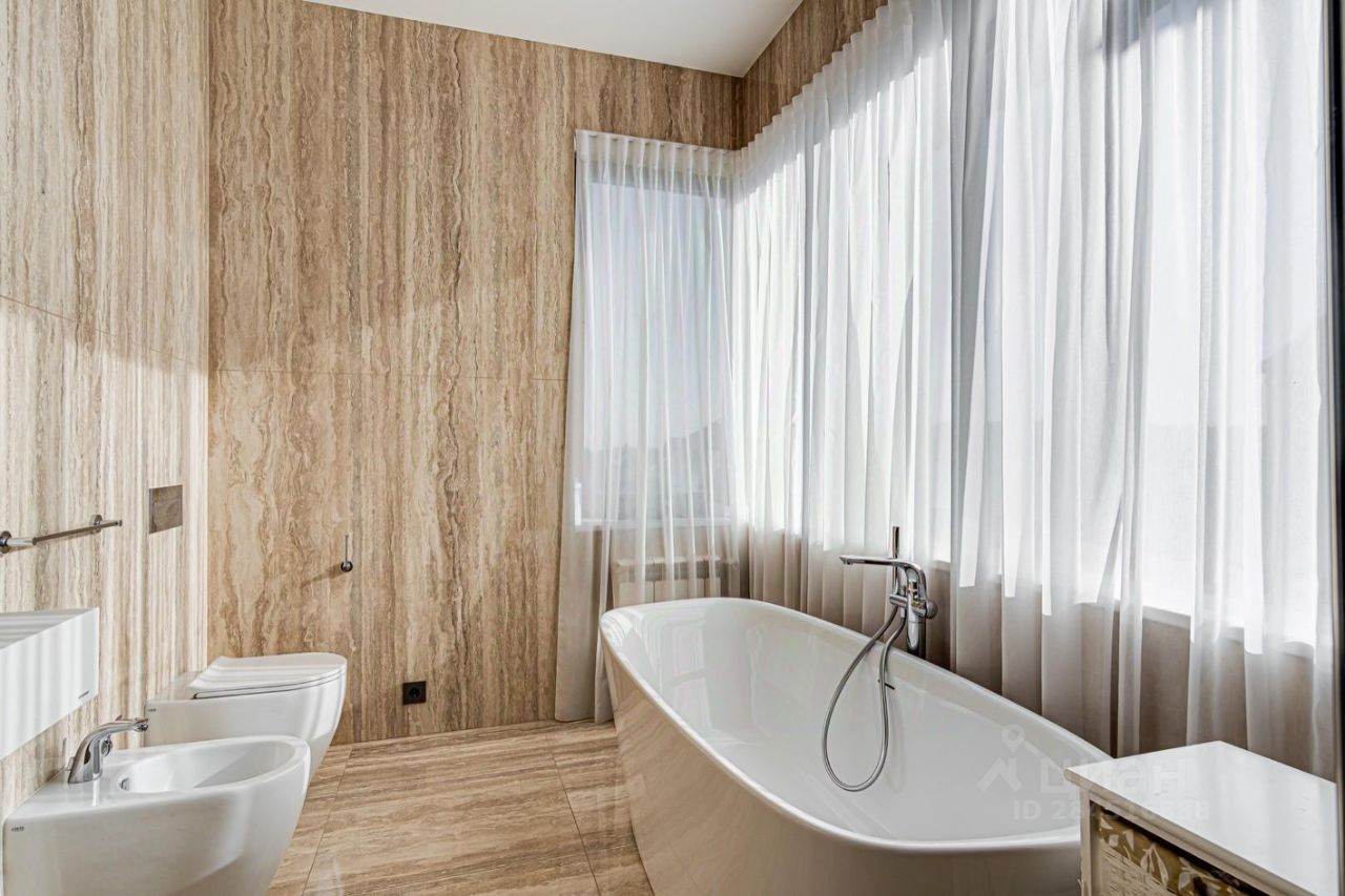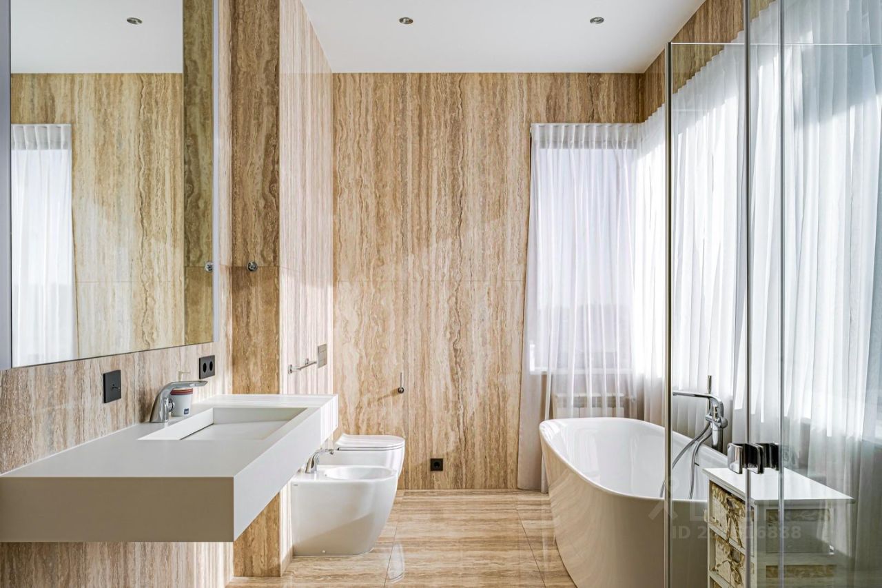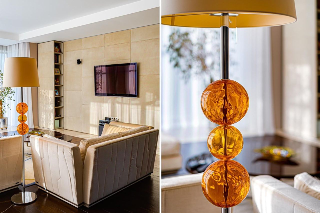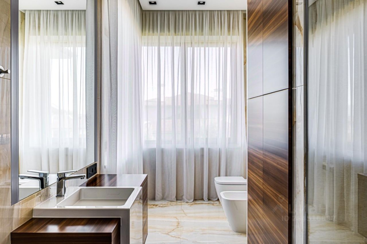 Внутренние интерьеры выполнены с применением высококачественных материалов. Паркет от итальянской фабрики IPF, керамогранит от итальянского премиум-производителя Fiandre. Раздвижные двери и стеновые панели от итальянской премиальной фабрики LONGHI. Сантехника топовых брендов: HPPE, Cielo, Gessi, Bisazza, Antonio Lupi, Duravit, Ideal Standard. Кухня фабрики Mittel.