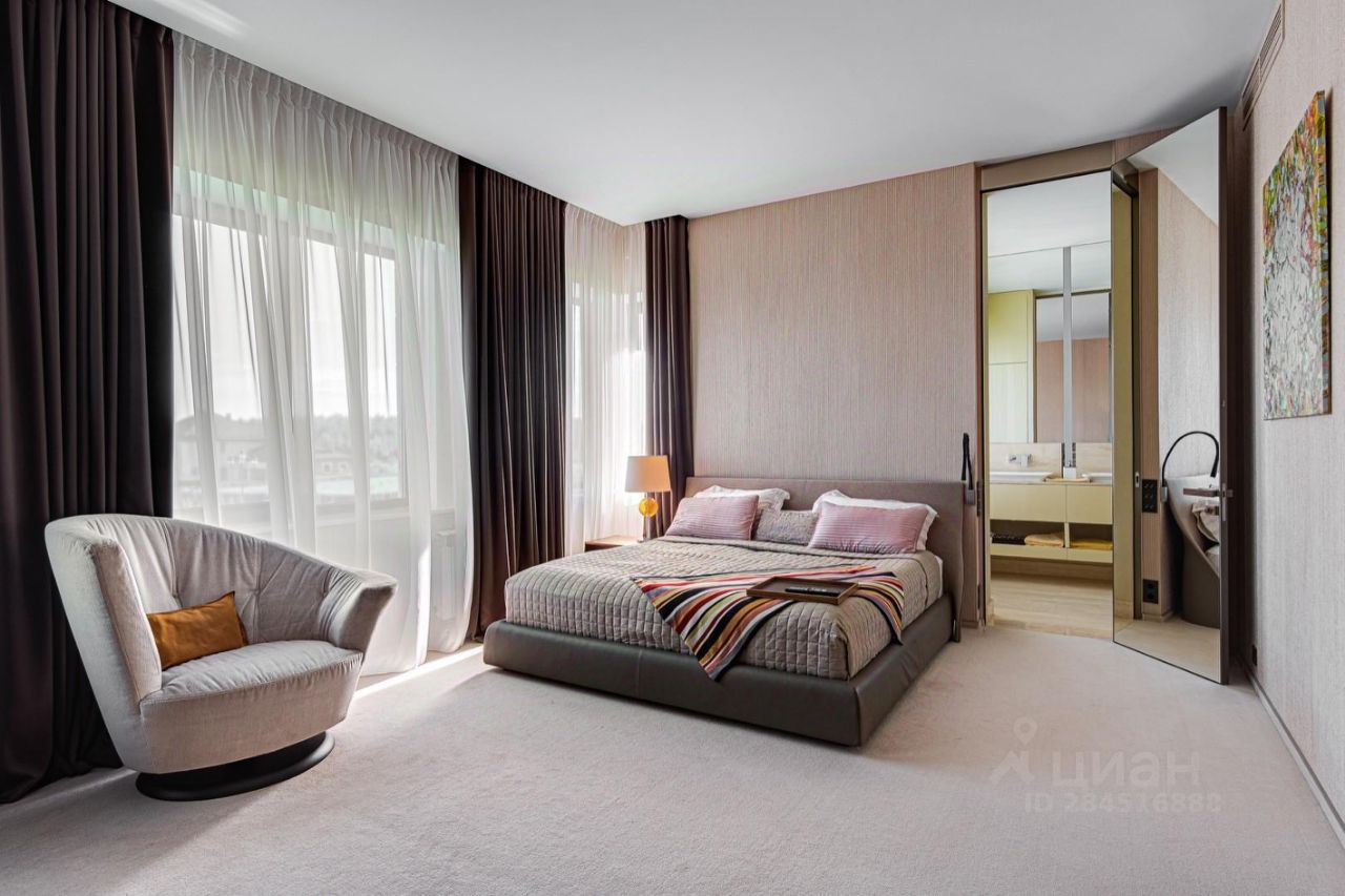 2 этаж: 3 спальни с гардеробными и ванными комнатами, гостиная с камином.
