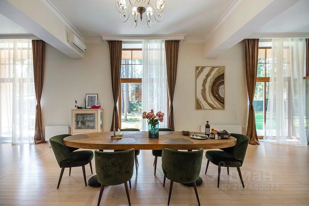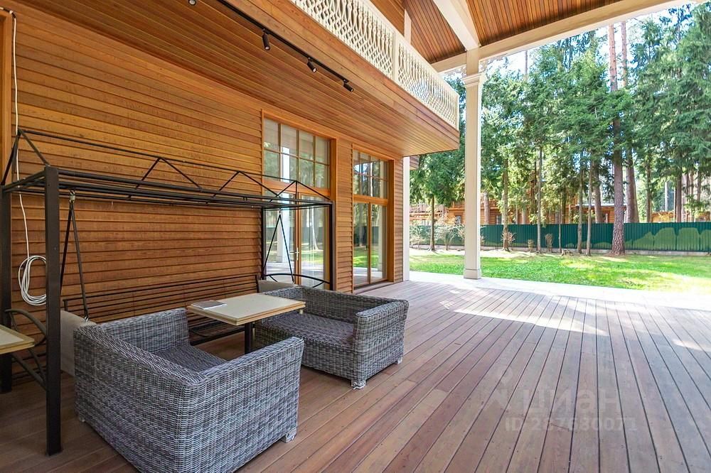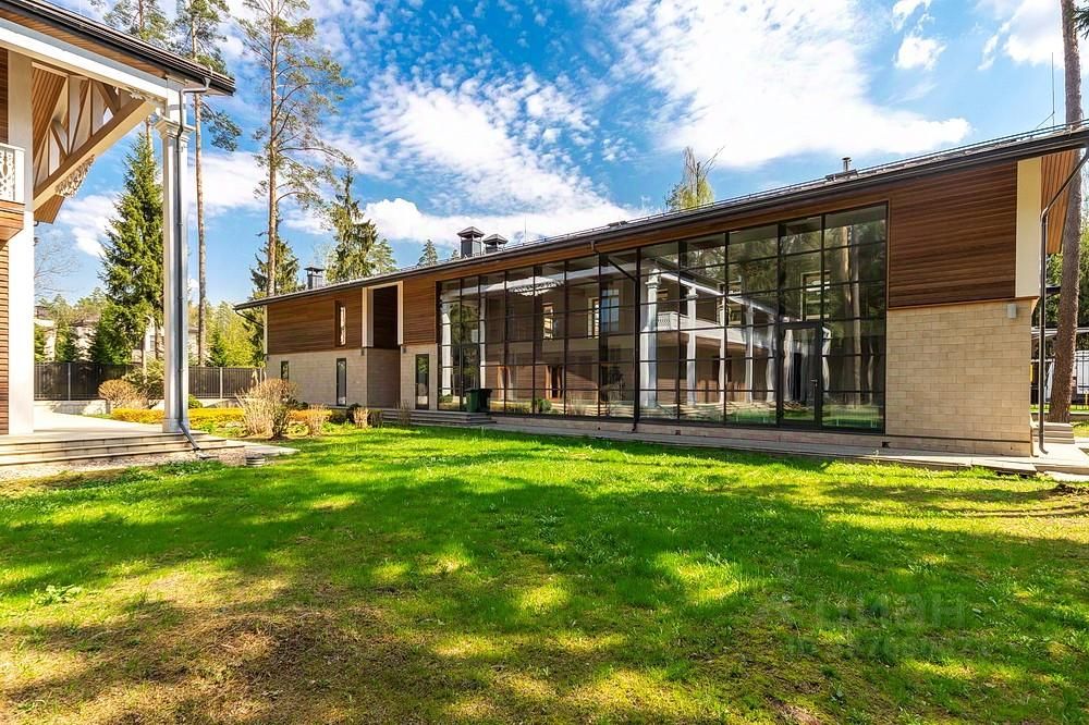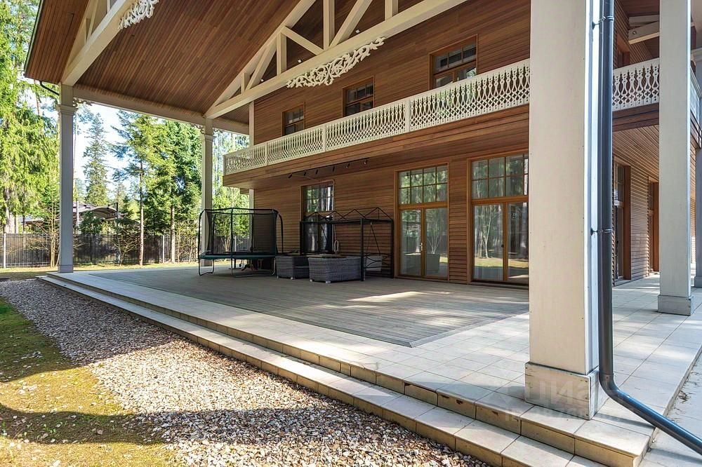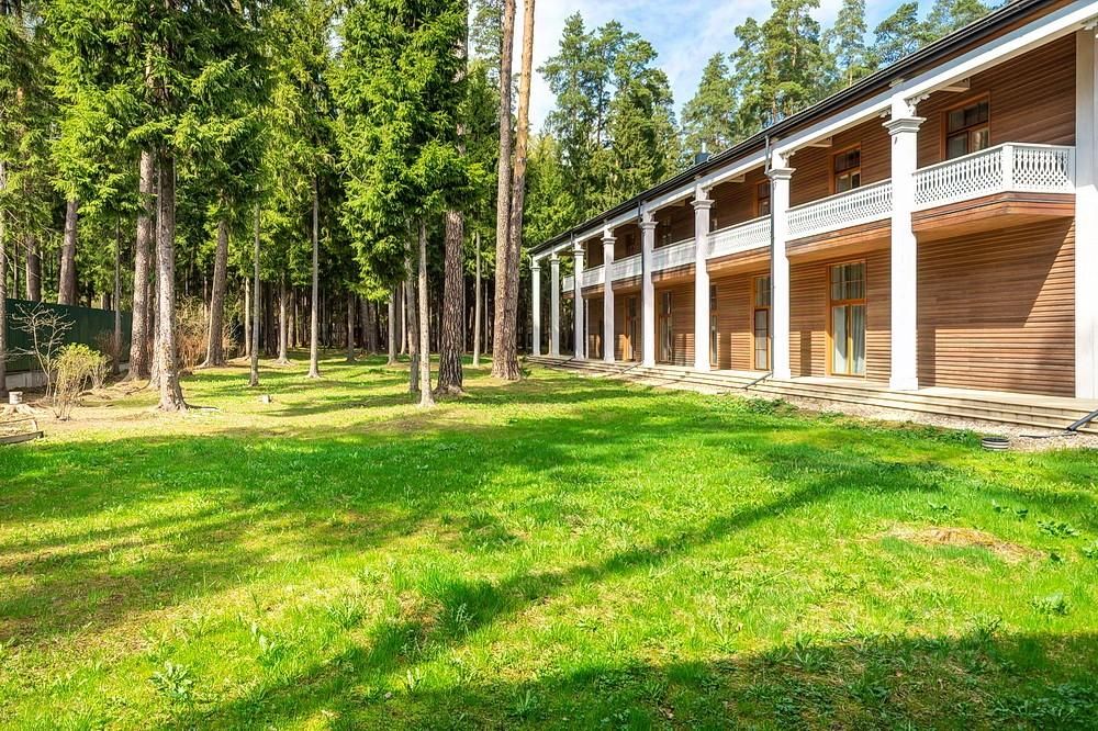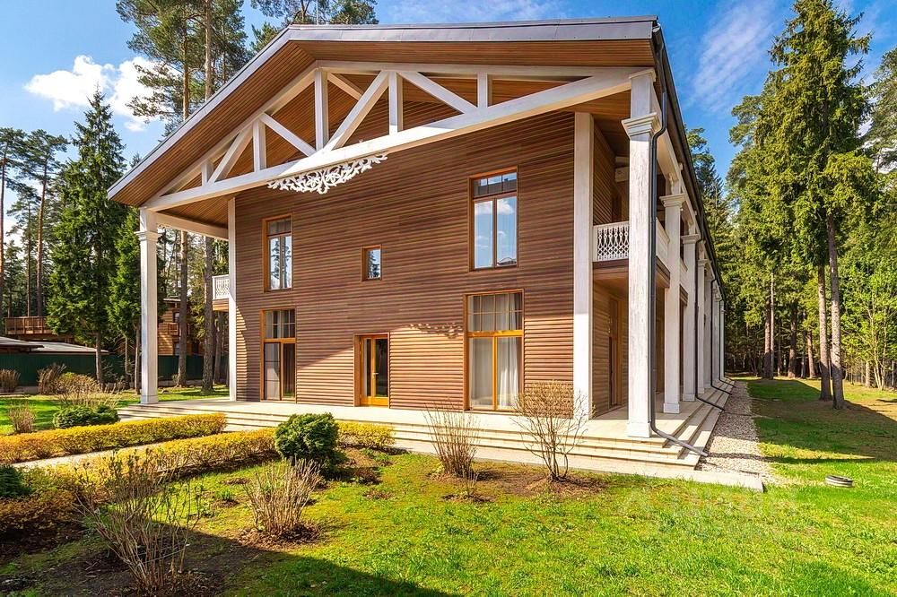 Предлагается на продажу резиденция в камерном поселке окруженном хвойным лесом. Основной дом стилизован под русскую усадьбу, фасад украшен деревянными колоннами и резными элементами декора, видовые террасы и балконы.