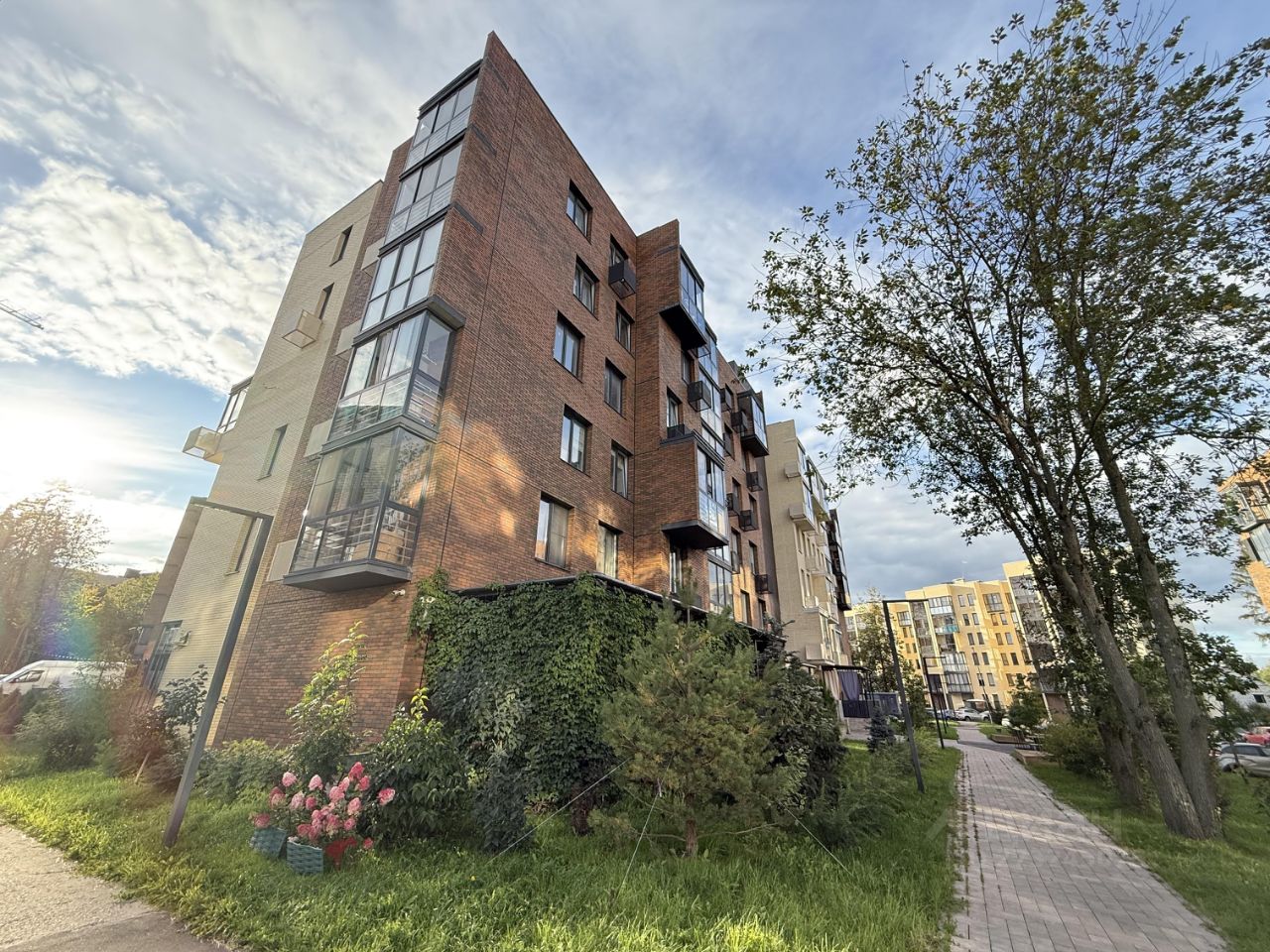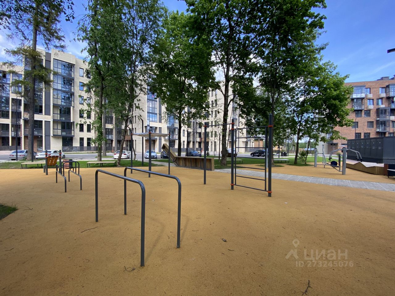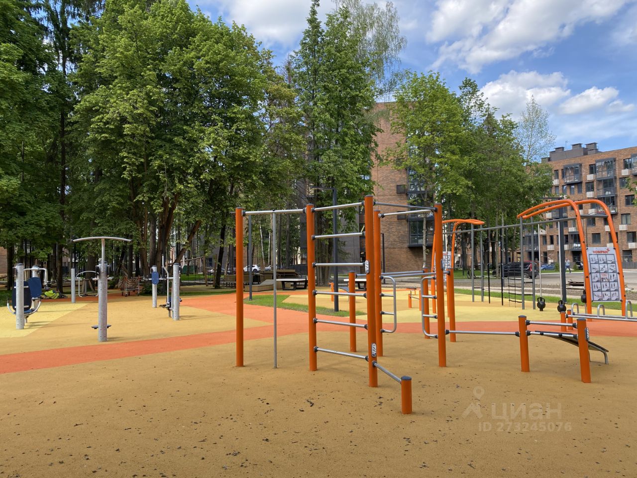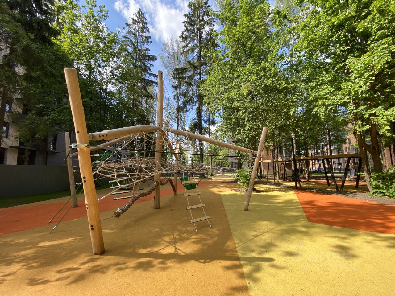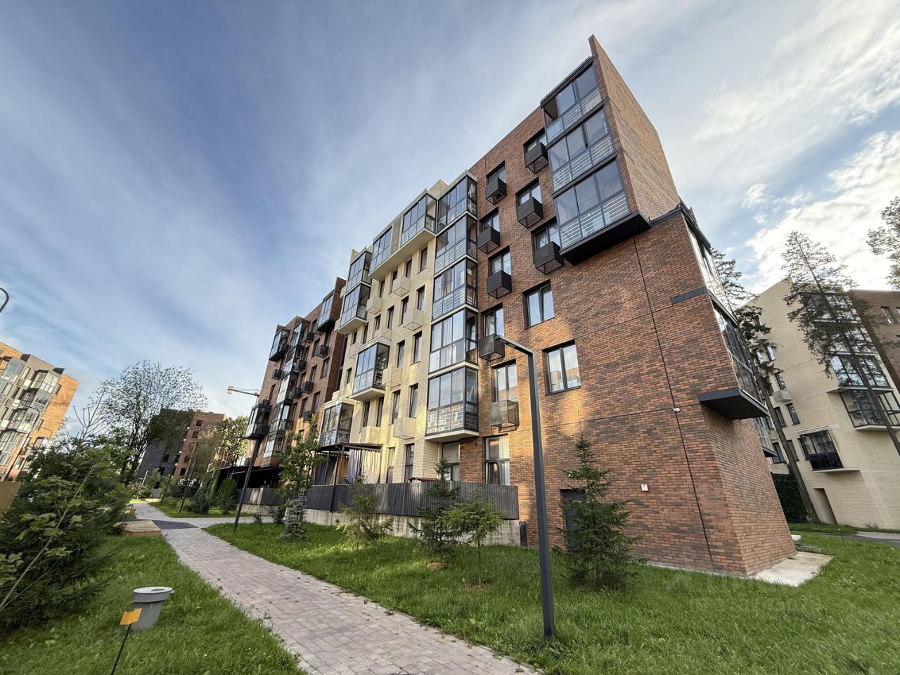 Лесная территория поселка с 6-этажными домами, благоустроенными детскими и спортивными площадками, скверами и зонами отдыха.