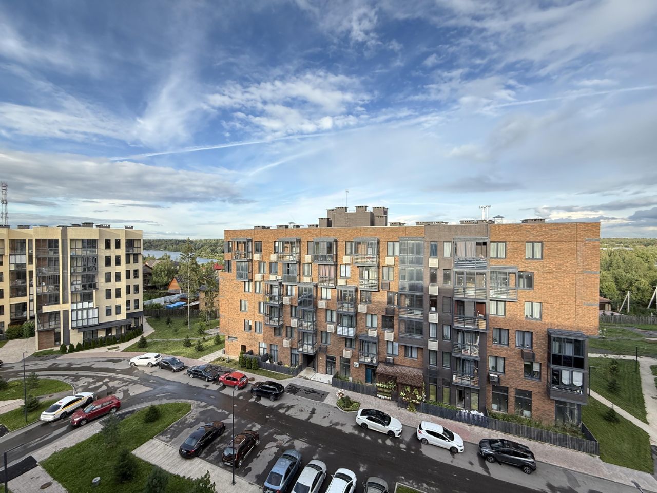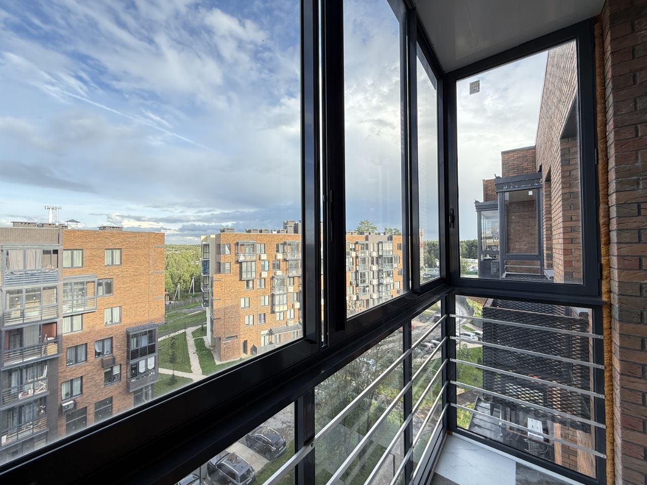 Из кухни-гостиной выход на балкон, установлен свет и есть розетка. С высокого этажа открывается красивый вид на всю территорию.