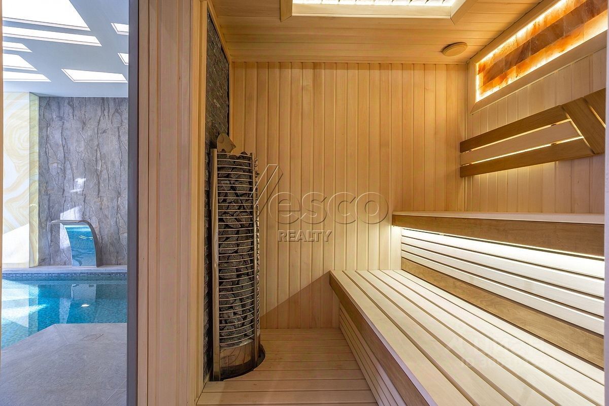 Дом оборудован приточно-вытяжной вентиляцией, канальными кондиционерами со скрытой установкой. Внутренняя отделка выполнена из дорогостоящих материалов: полы массив американского ореха, стеновые панели из ореха и дуба с подсветкой, отделка камина натуральный камень, французский камин supra, крупноформатный современный керамогранит. Кухня оборудована техникой премиального уровня KUPPERSBUSCH, два винных шкафа, столешница из кварцита и т.д. Сантехника премиальных брендов: Villeroy&Boch, Jacob Delafon, Jacuzzi. Ремонтные работы закончены в 2024 году.