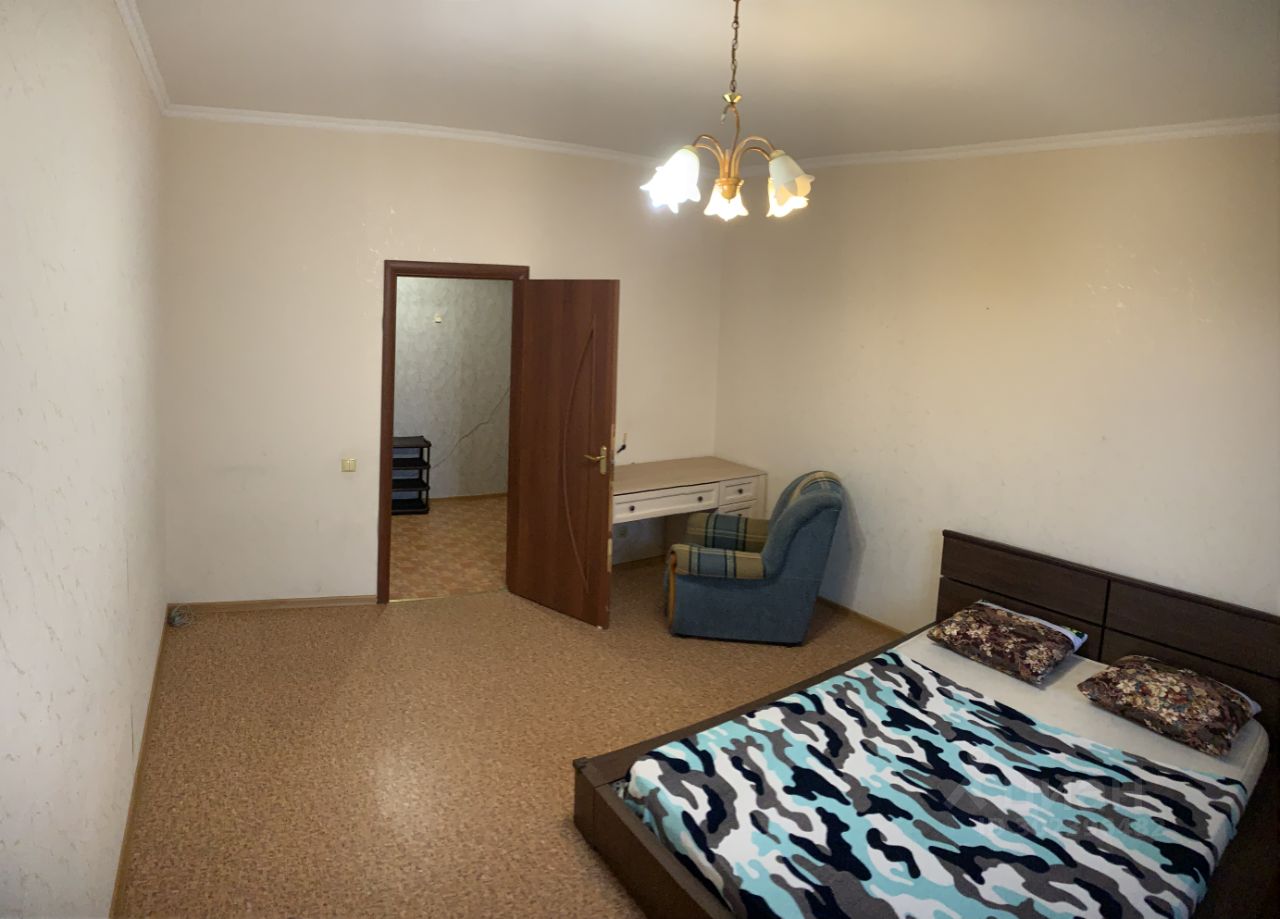 В квартире есть двуспальная кровать, двуспальный диван на кухне, кресло, кухонный гарнитур, электроплита, холодильник, стол кухонный, шкаф в прихожей, стиральная машинка, стол рабочий 2 шт., лоджия во всю ширину квартиры!