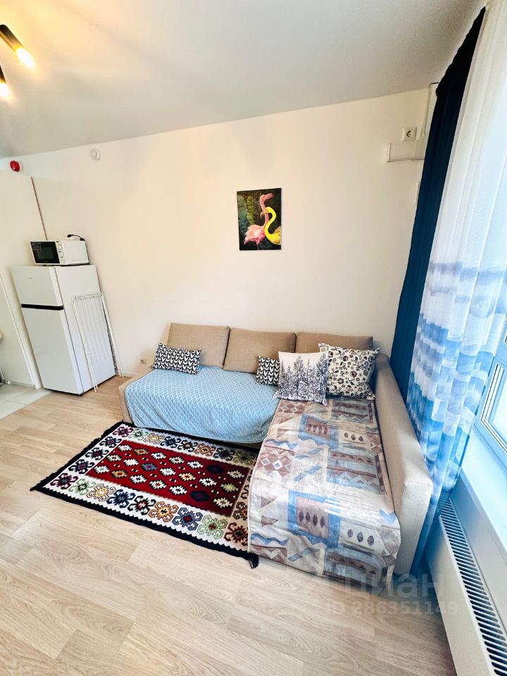 Студия очень уютная, новый ремонт, оборудована всем необходимым: кухонный гарнитур, эл.варочная панель, холодильник, микроволновая печь, стиральная машина, двуспальный диван, телевизор. Окна выходят на лес. Прямо рядом с домом лес с пешеходными маршрутами. В пешей доступности все магазины, салоны красоты, Окей, Вейпарк. Во дворе огромная игровая площадка.