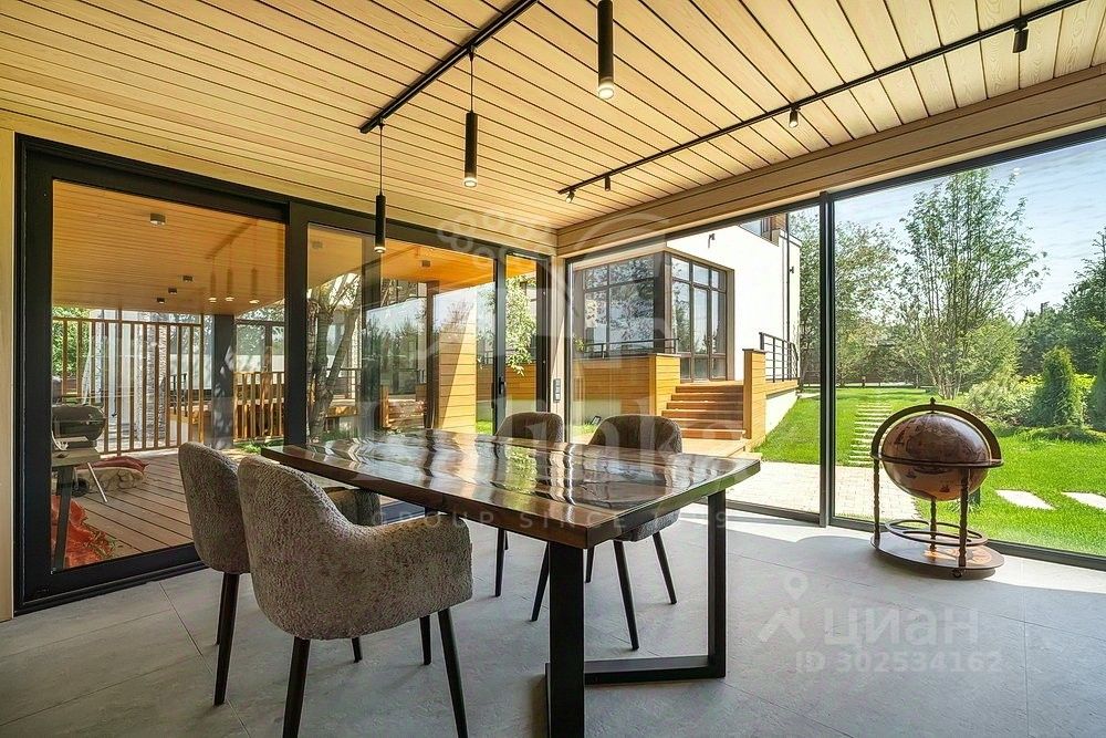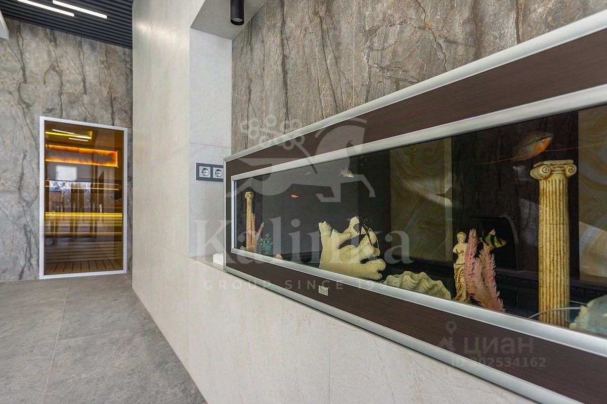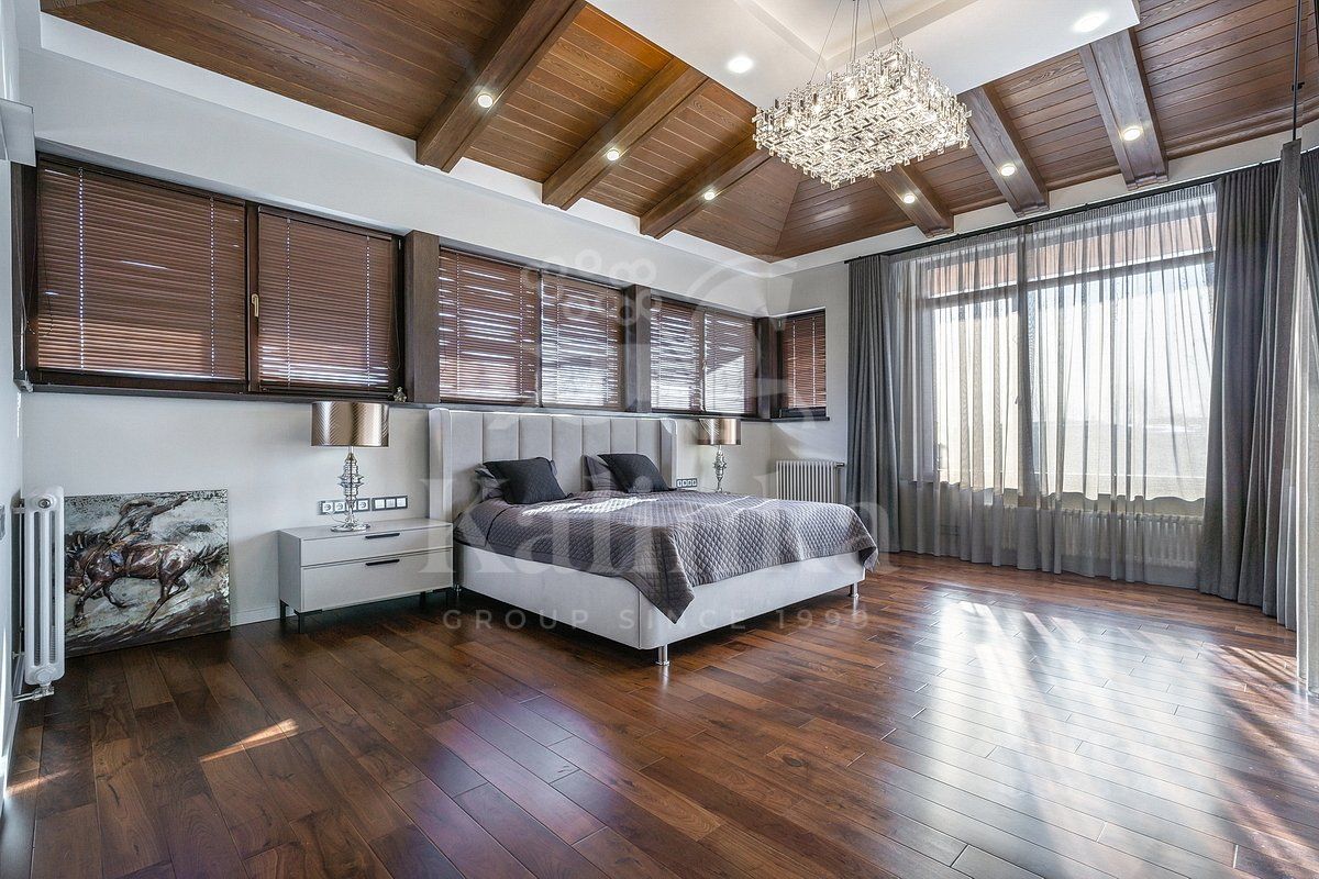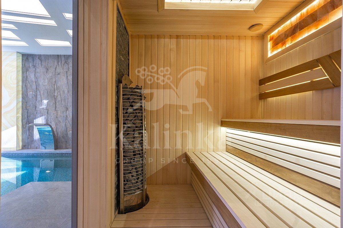 Дом оборудован приточно-вытяжной вентиляцией, канальными кондиционерами со скрытой установкой. Внутренняя отделка выполнена из дорогостоящих материалов: полы из массива американского ореха, стеновые панели из ореха и дуба с подсветкой, отделка камина — натуральный камень, французский камин Supra, крупноформатный современный керамогранит. Кухня оснащена техникой премиального уровня KUPPERSBUSCH, двумя винными шкафами, столешницей из кварцита и т.д. Сантехника премиальных брендов: Villeroy & Boch, Jacob Delafon, Jacuzzi.